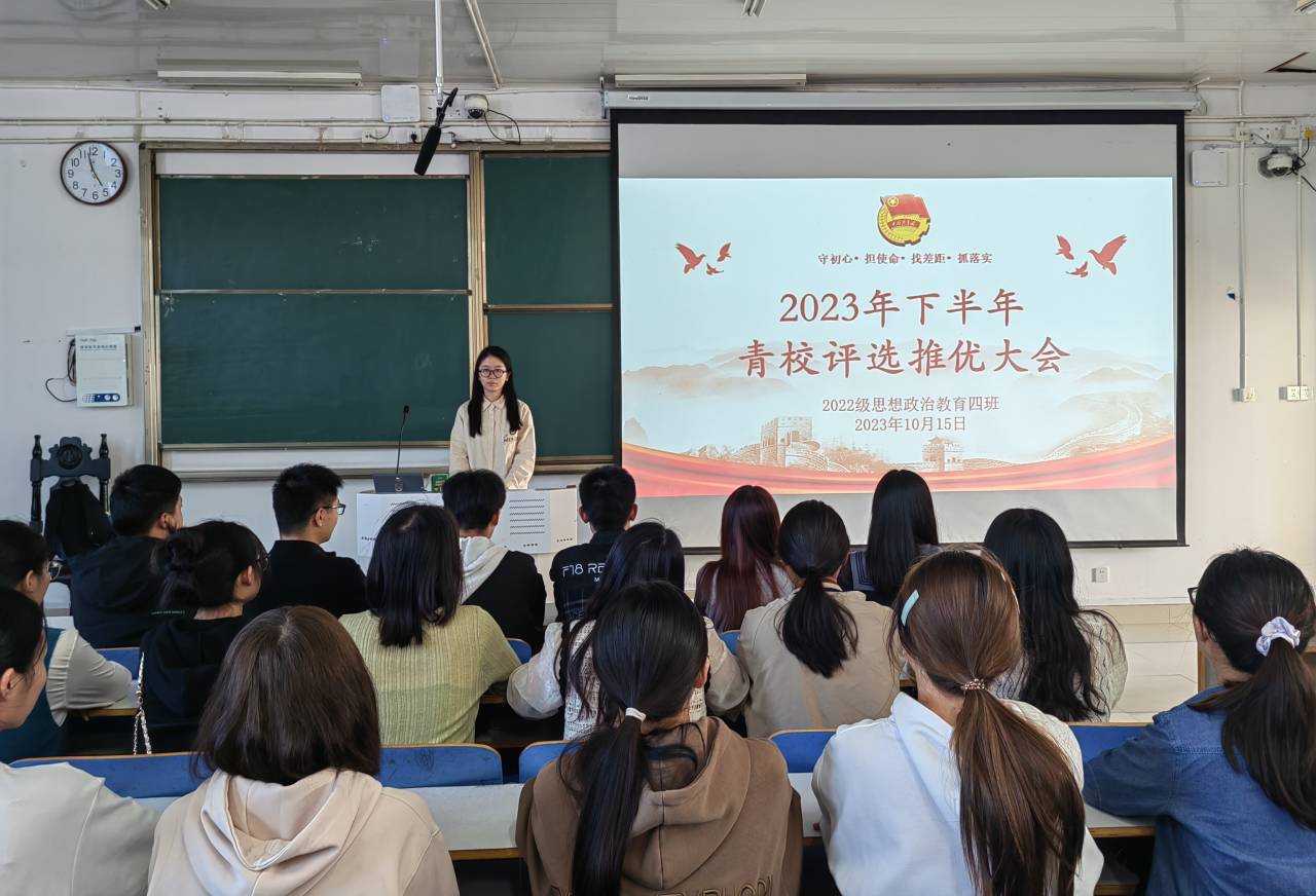 10月15日上午,ok138cn太阳集团5292022级思想政治教育四班在社科楼514教室召开“青年共产主义学校”推优大会。我院2022级思想政治教育四班全体同学参与本次大会。团支书牛志杰主持本次会议。