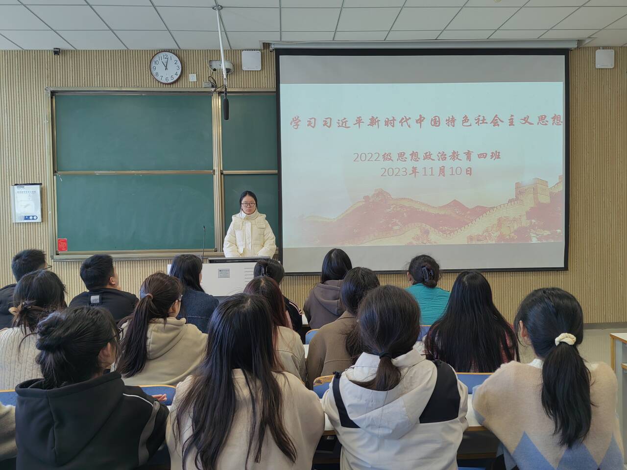 11月10日上午,ok138cn太阳集团5292022级思想政治教育四班在社科楼515教室召开“深入学习贯彻习近平新时代中国特色社会主义思想”主题团课。我院2022级思想政治教育四班全体同学参与本次班会。本次团课由团支书牛志杰主持。