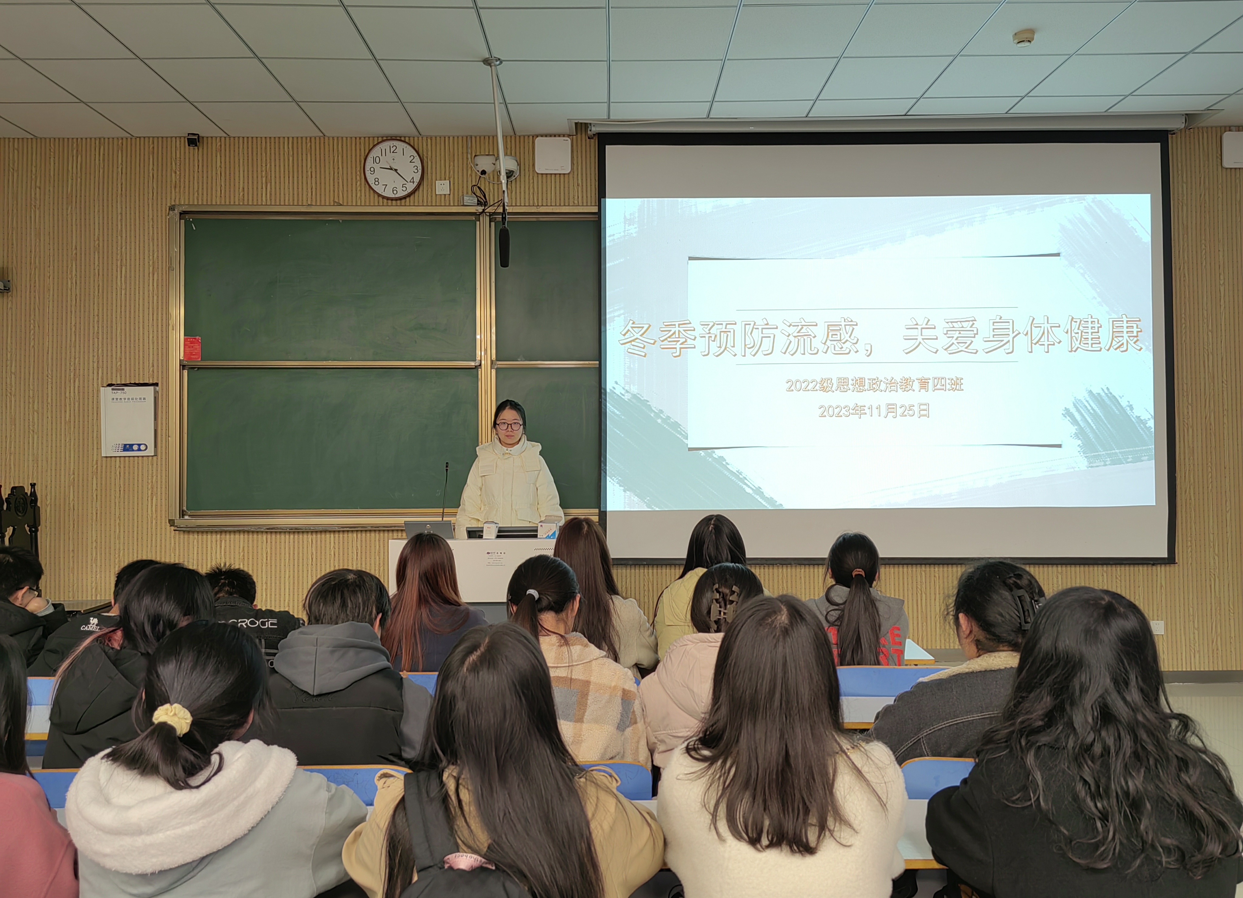为普及冬季流感健康知识,提高同学们对于疾病的防治意识和能力,11月25日下午,ok138cn太阳集团5292022级思想政治教育四班在社科楼515教室召开“冬季预防流感,关爱身体健康”主题班会。我院2022级思想政治教育四班全体同学参与本次班会。本次班会由班长牛志杰主持。