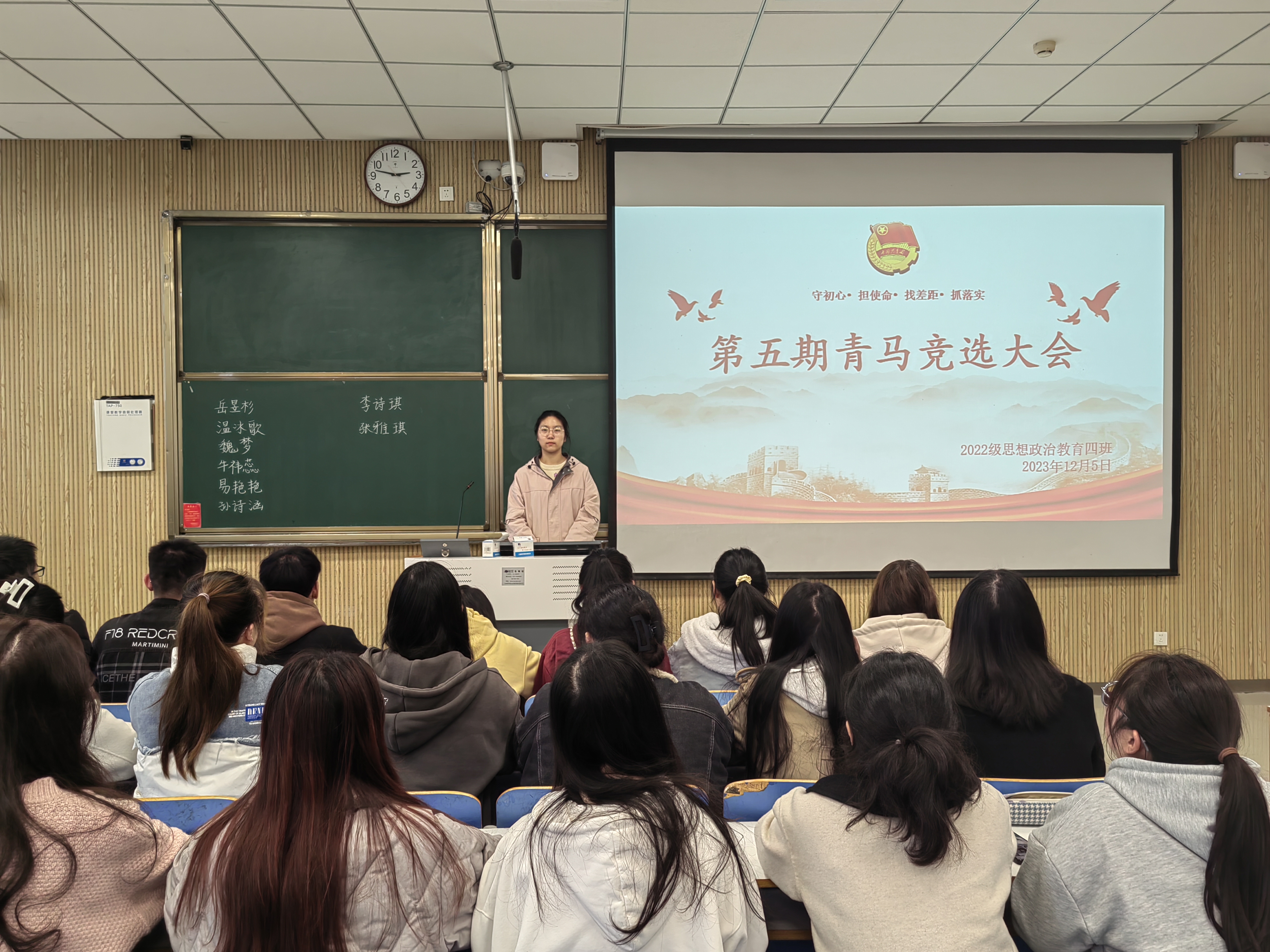 为进一步学习贯彻习近平新时代中国特色社会主义思想,保障青年马克思主义者培养工程接续发展,12月5日下午,ok138cn太阳集团5292022级思想政治教育四班在社科楼515教室召开第五期青马竞选大会。我院2022级思想政治教育四班全体同学参与本次班会。本次团课由团支书牛志杰主持。