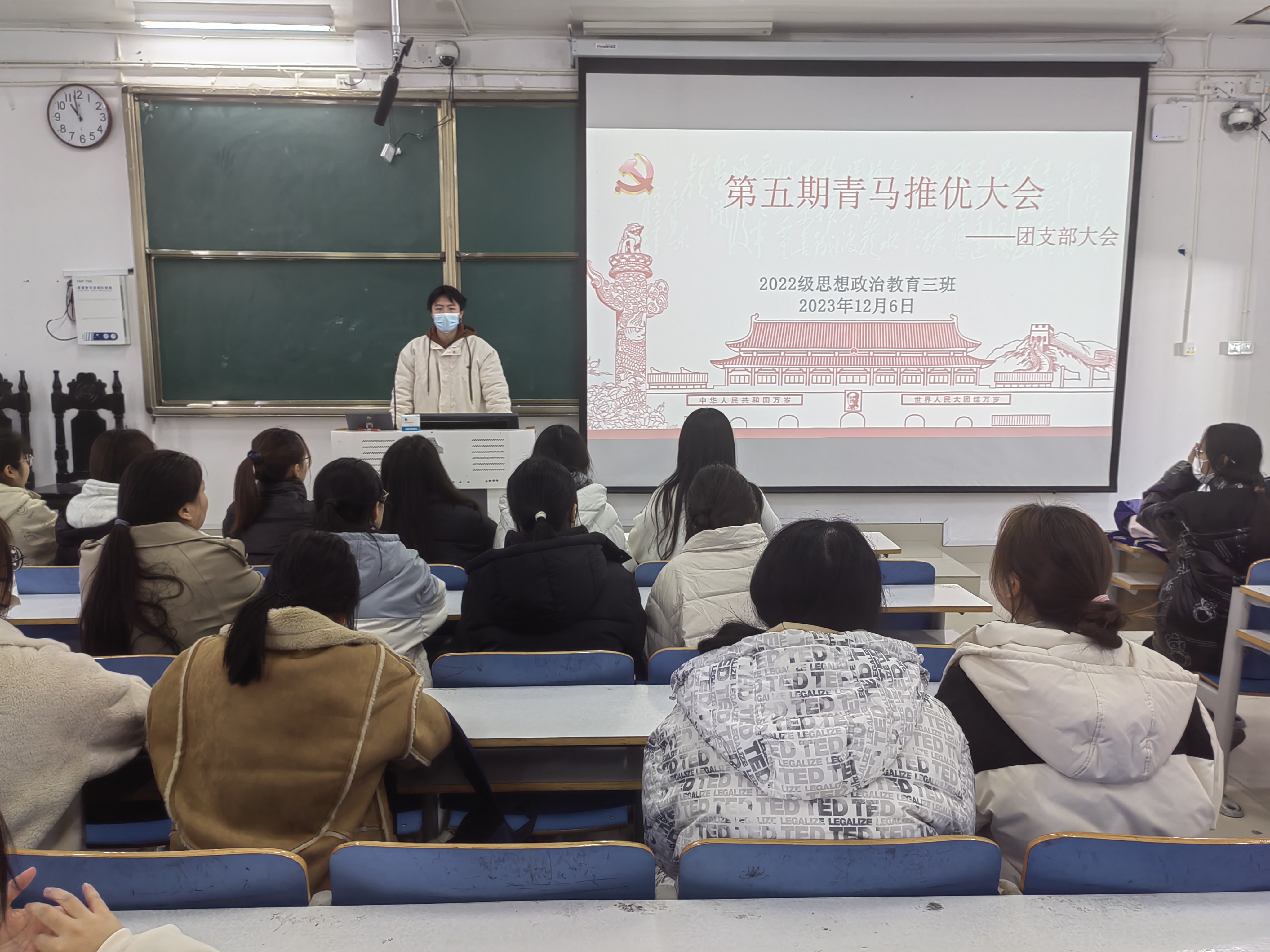 12月6日上午,ok138cn太阳集团5292022级思想政治教育三班在514教室开展第五期青马推优大会。我院2022级思想政治教育三班全体团员共同参与此次推优大会。大会由团支书余浩洋主持。