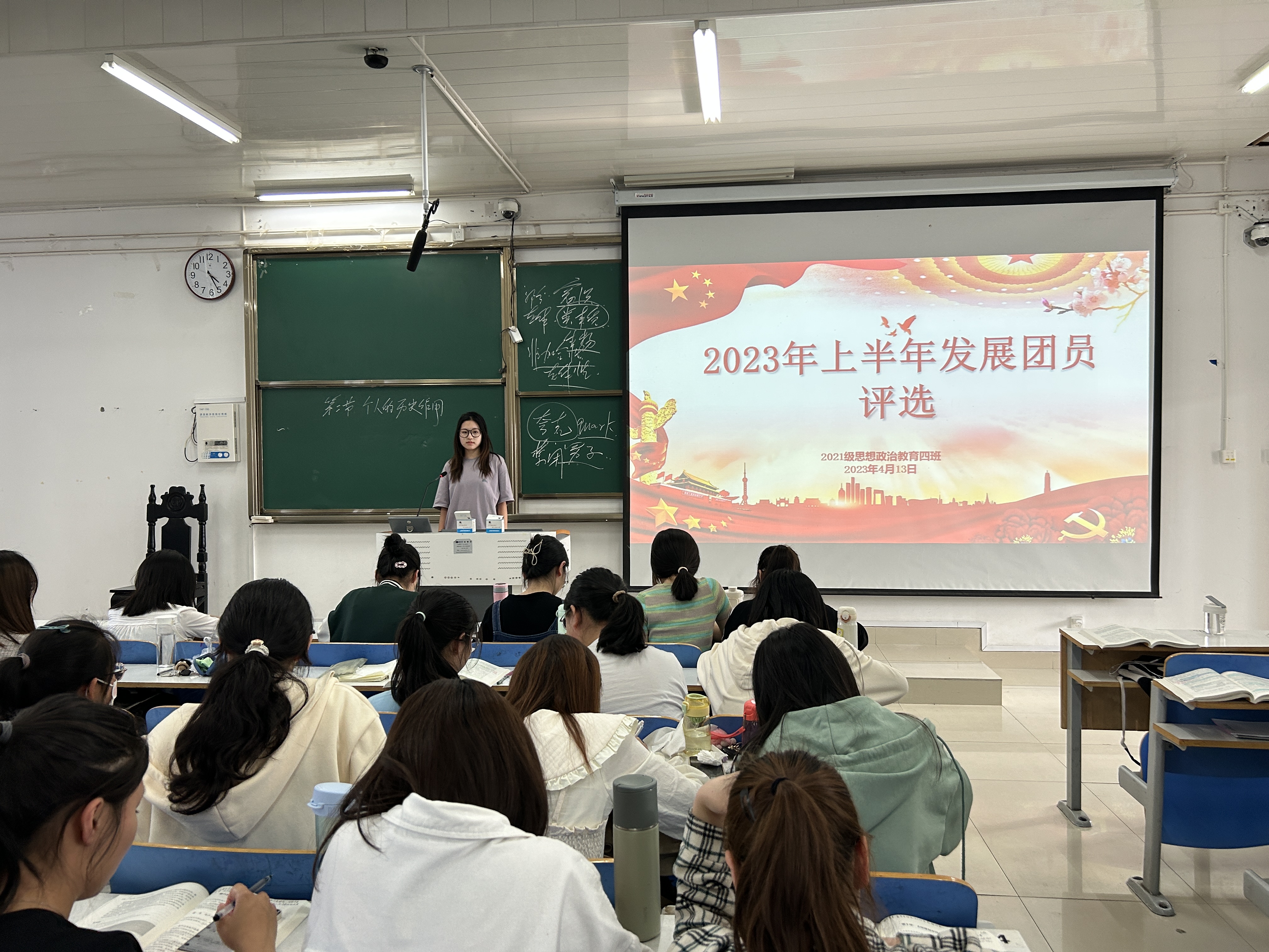4月13日下午,ok138cn太阳集团5292021级思想政治教育四班在社科楼514教室召开2023年下半年发展团员民主评议会。2021级思想政治教育四班全体团员共同参会。会议由团支书刘珂含主持。