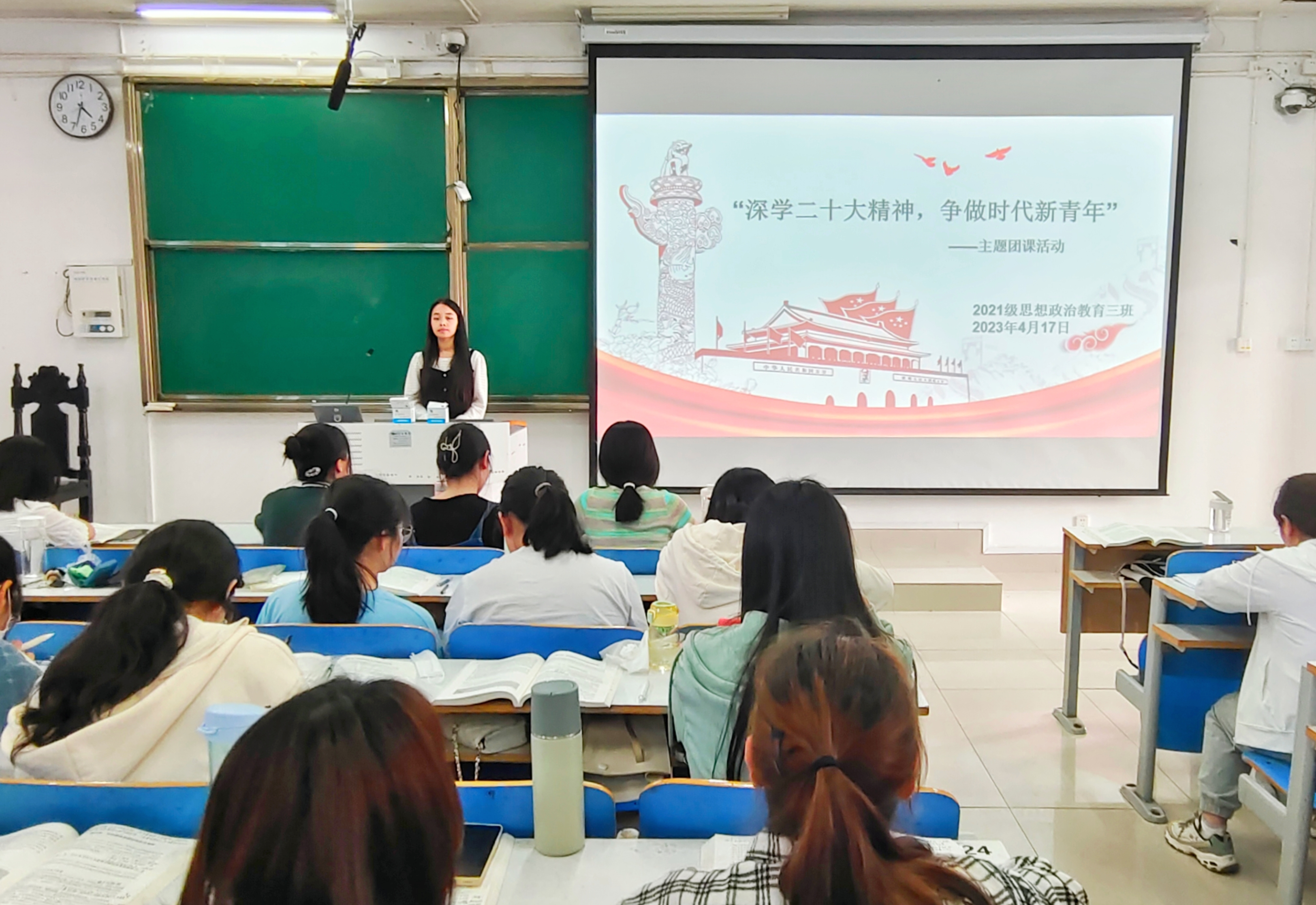 4月17日下午,ok138cn太阳集团5292021级思想政治教育三班在社科楼514教室举办“深学二十大精神,争做时代新青年”主题团课活动。ok138cn太阳集团5292021级思想政治教育三班全体团员参与此次会议。团课由团支书王岚霄主持。