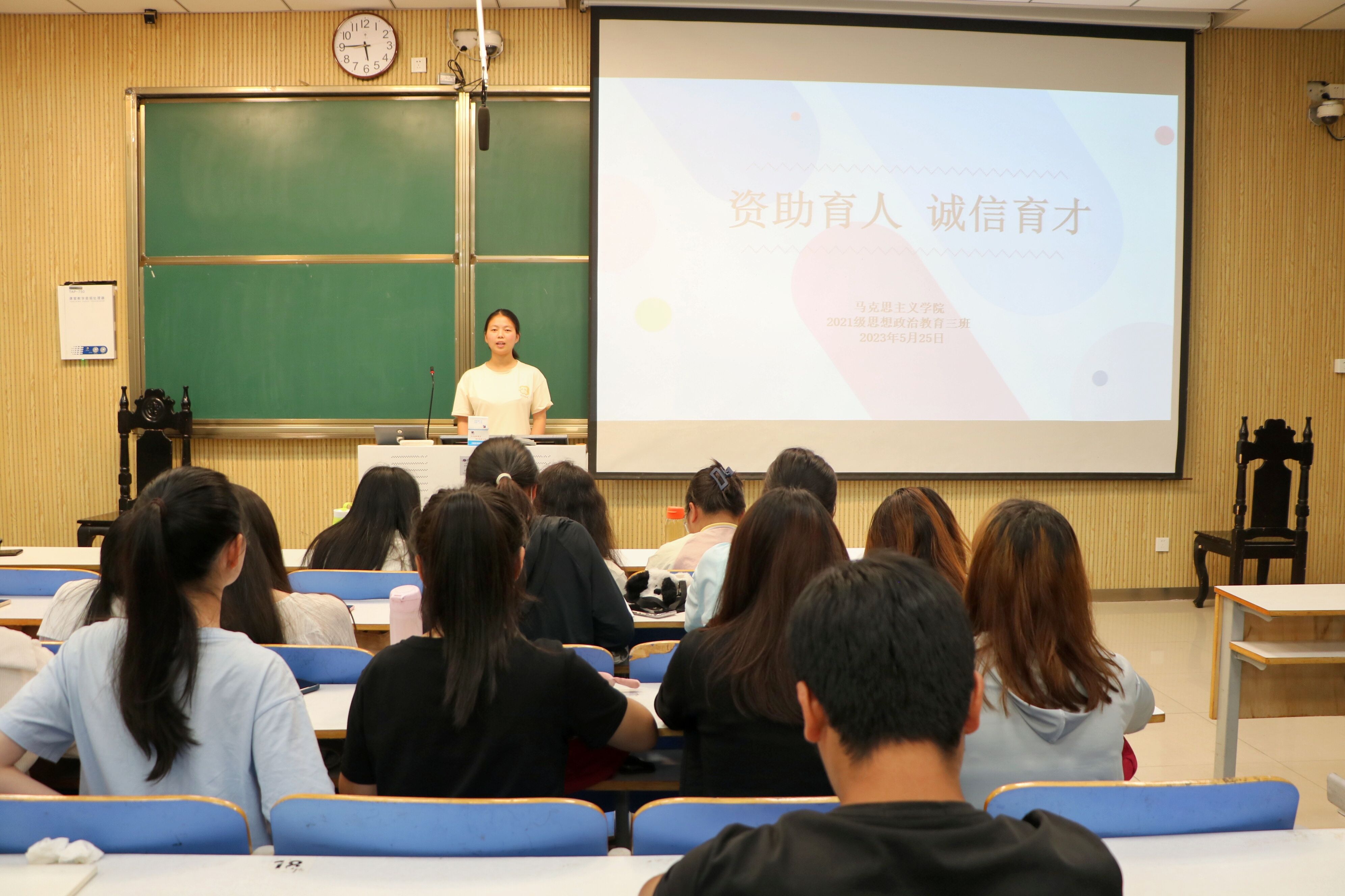 国家寄希望于青年,赠温暖于青年。5月25日下午,ok138cn太阳集团5292021级思想政治教育三班在社科楼515教室召开“资助育人,诚信育才”主题班会。ok138cn太阳集团5292021级思想政治教育三班全体成员参与此次会议。会议由副班长易从漫主持。