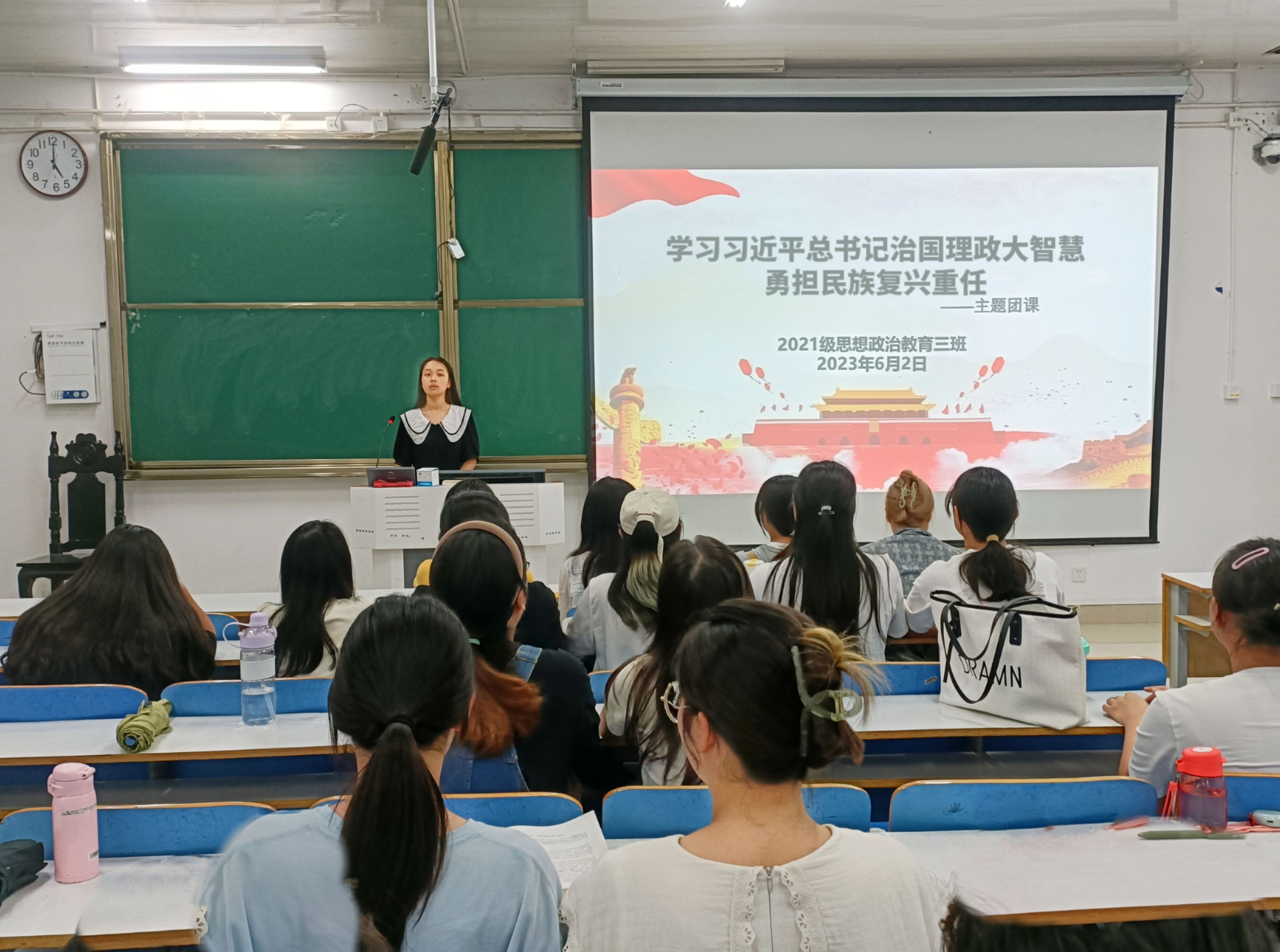 6月2日下午,ok138cn太阳集团5292021级思想政治教育三班在社科楼514教室召开“学习习近平总书记治国理政大智慧,勇担民族复兴重任”主题团课。ok138cn太阳集团5292021级思想政治教育三班全体团员参与此次会议。会议由团支书王岚霄主持。