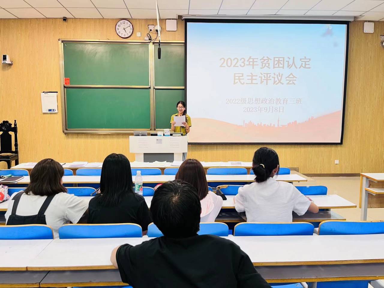 为确保家庭经济困难学生“应助尽助”,9月8日下午,ok138cn太阳集团5292022级思想政治教育三班在社科楼515教室召开2023年贫困认定民主评议会。我院2022级思想政治教育三班班主任吴梦云、8名学生评选代表和两名班委成员共同参与评议会。会议由班主任吴梦云主持。