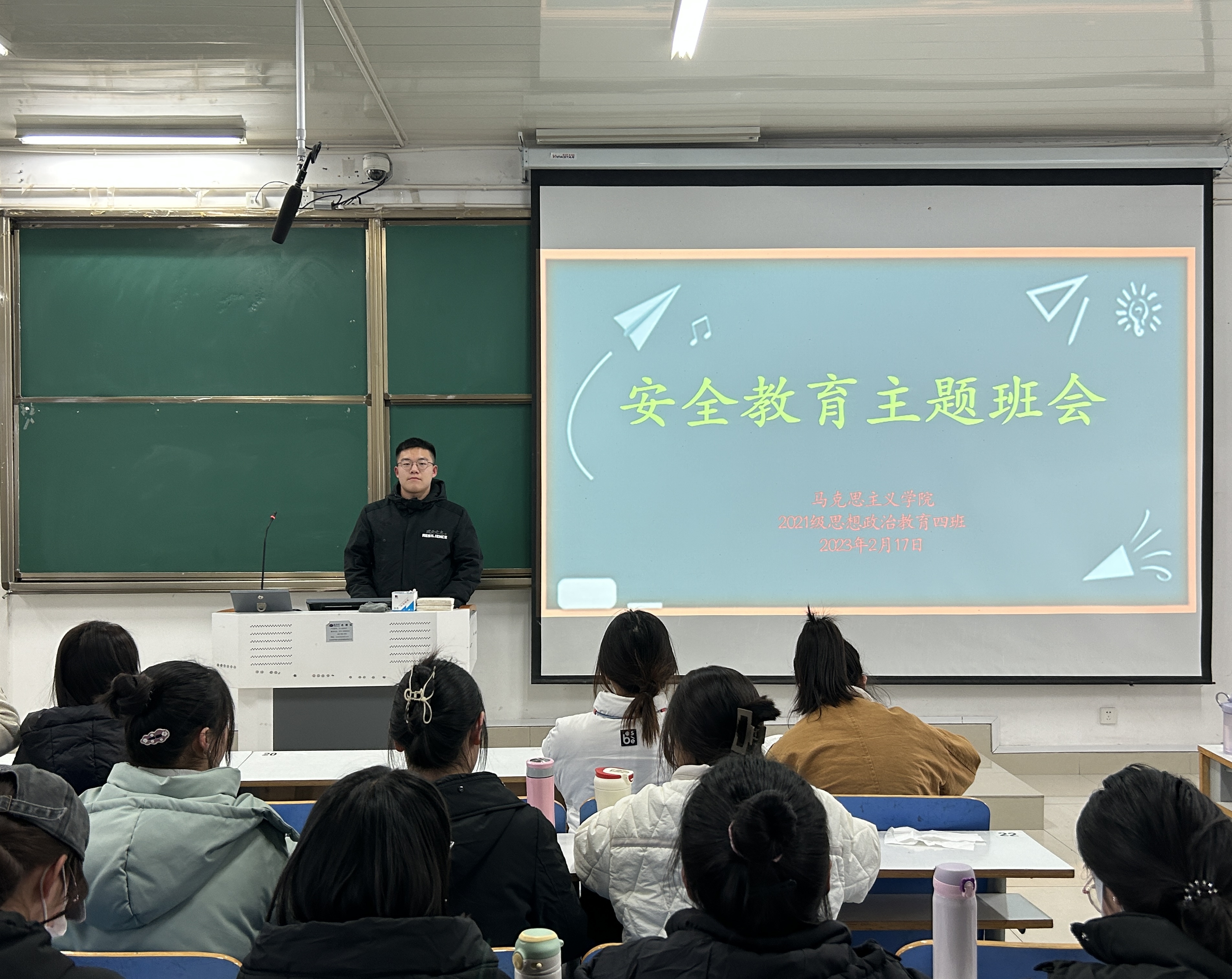 2月17日下午,ok138cn太阳集团5292021级思想政治教育四班在社科楼514教室开展安全教育主题班会。2021级思想政治教育四班全体同学共同参会。班会由副班长常康哲主持。