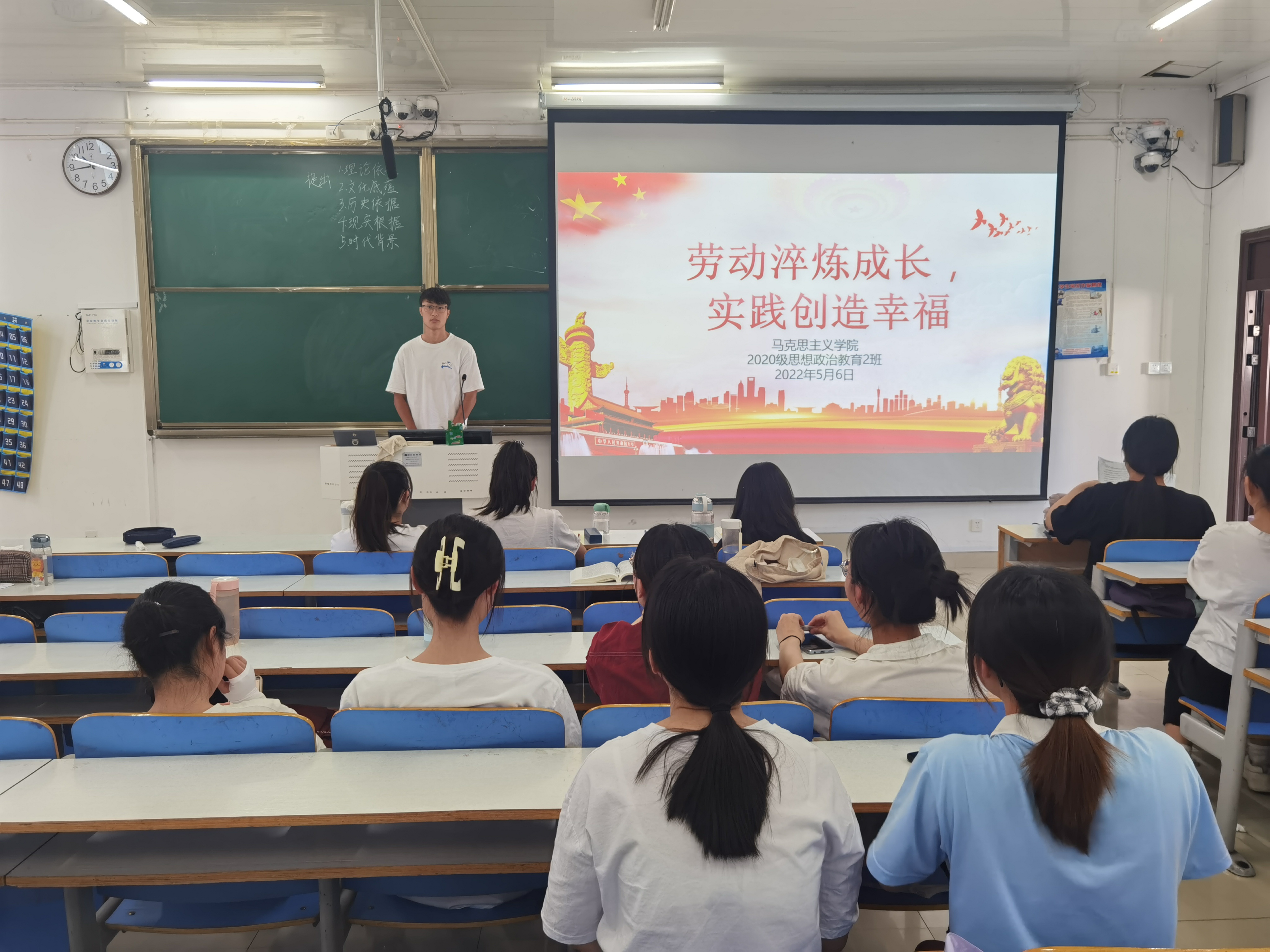为进一步加强劳动教育,提高同学们的劳动意识,5月6日下午,ok138cn太阳集团5292020级思想政治教育二班、定向二班在社科楼514教室开展“劳动淬炼成长,实践创造未来”主题班会。2020级思想政治教育二班、定向二班全体成员参与本次班会。班会由班长陈宇航主持。
