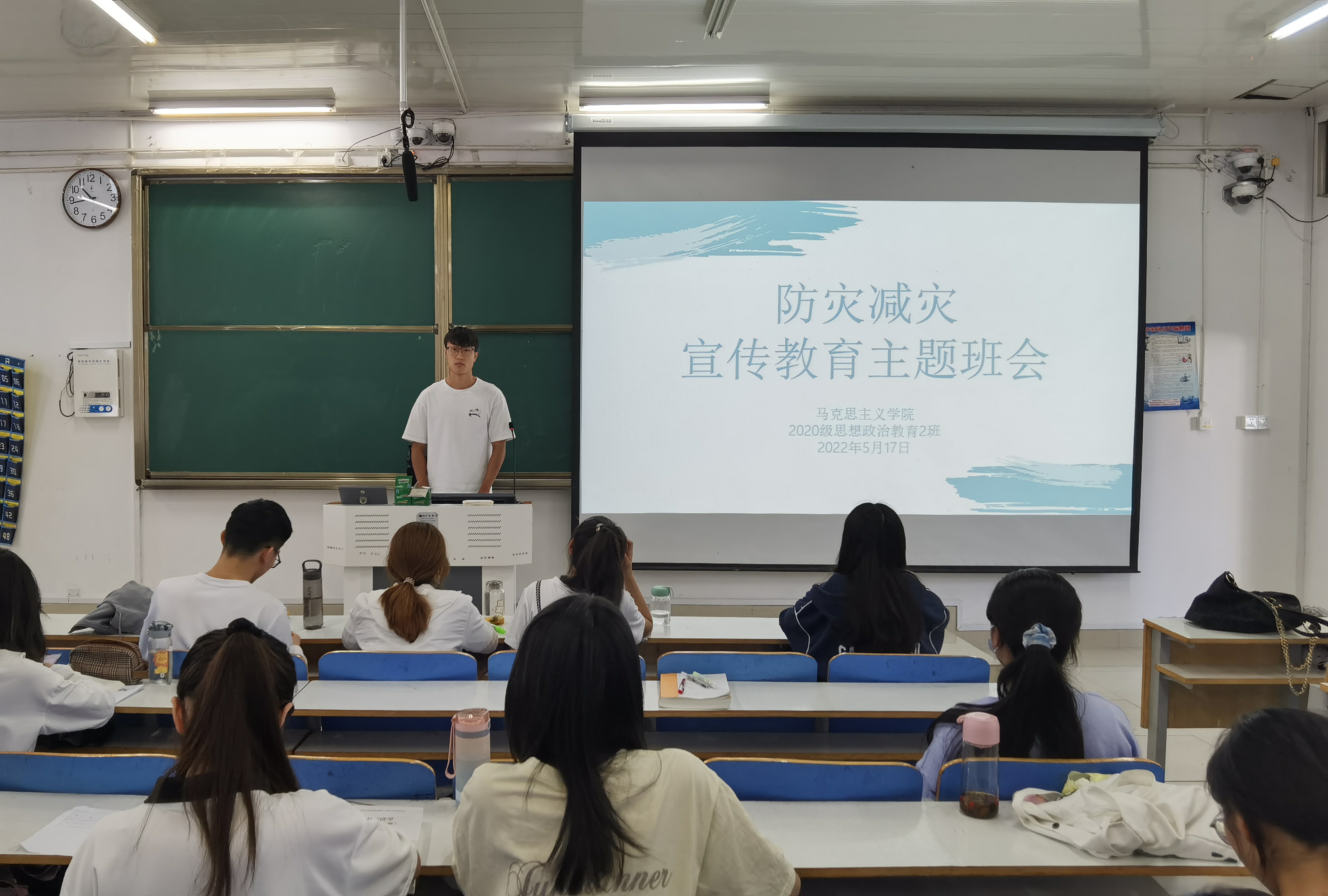 为加强学生安全教育,提高学生防灾减灾意识,5月17日上午,ok138cn太阳集团5292020级思想政治教育二班、定向二班在社科楼514教室召开“防灾减灾”宣传教育主题班会。2020级思想政治教育二班、定向二班全体同学共同参与本次班会。班会由团支书陈宇航主持。