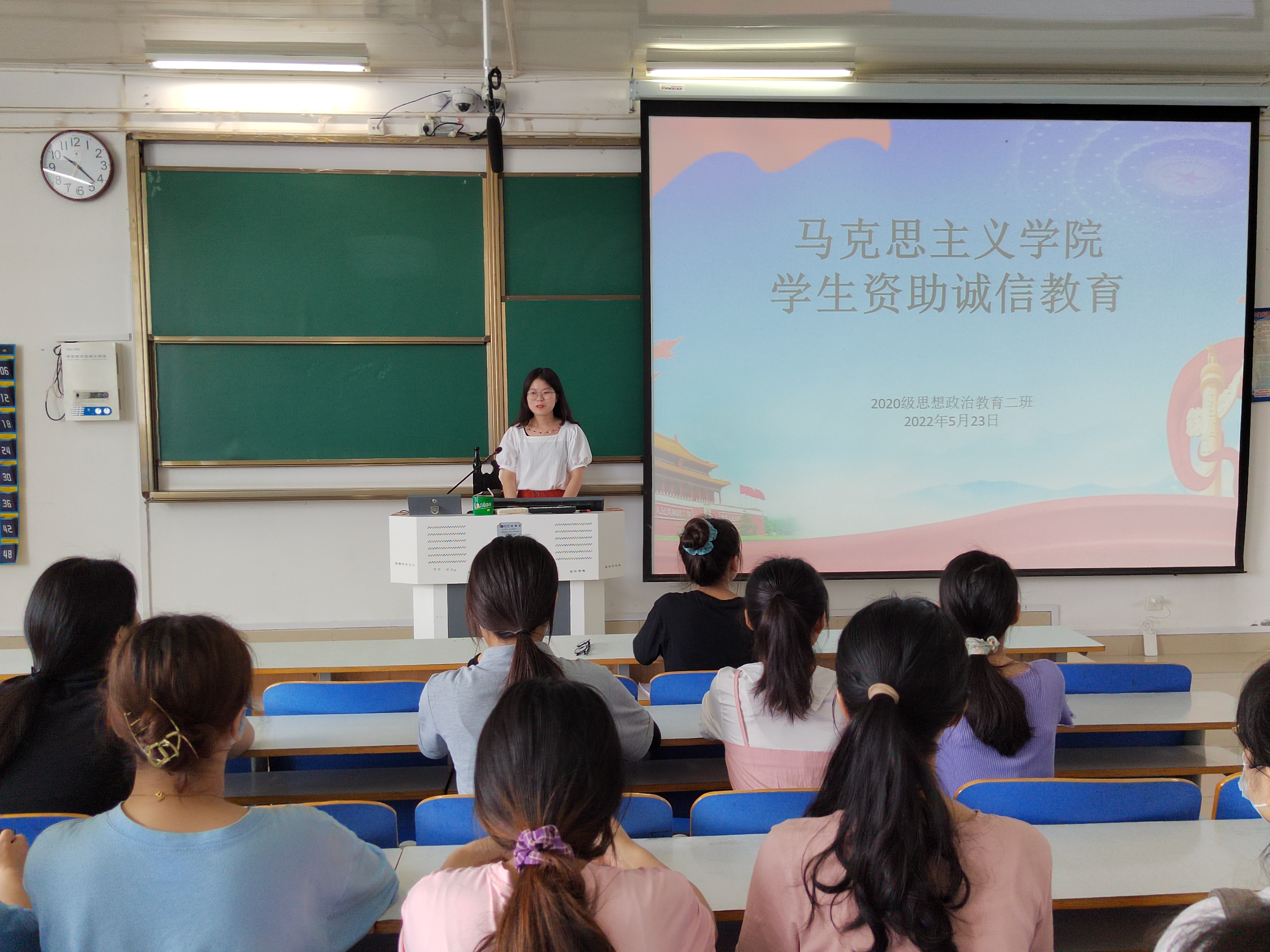 5月23日上午,ok138cn太阳集团5292020级思想政治教育二班、定向二班在社科楼514教室召开学生资助诚信教育主题班会。辅导员高小佳及2020级思想政治教育二班、定向二班全体同学共同参会。班会由高小佳主持。