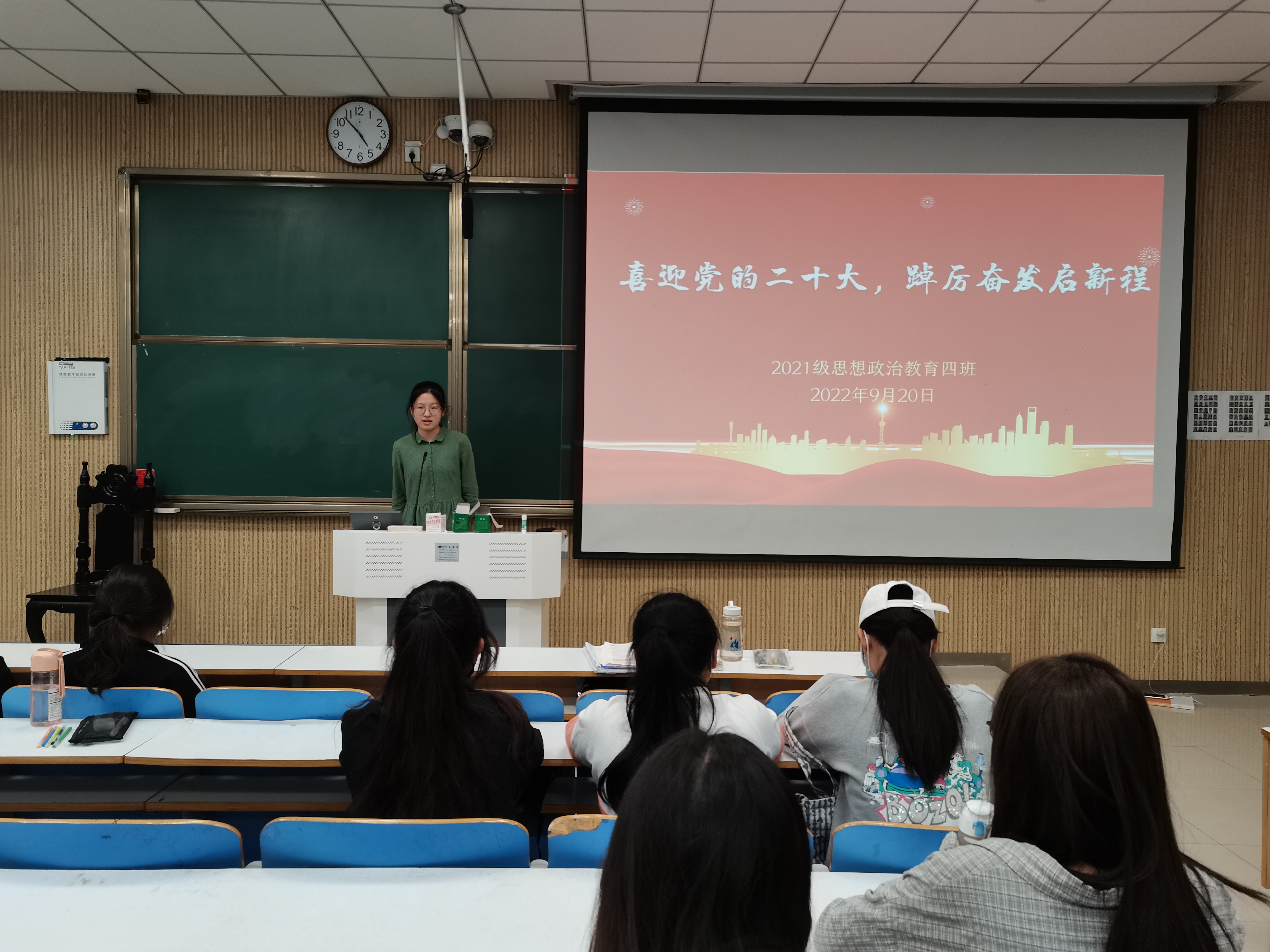 9月20日下午,ok138cn太阳集团5292021级思想政治教育四班在社科楼516教室召开“喜迎党的二十大,踔厉奋发启新程”主题团课。2021级思想政治教育四班全体同学参加本次团课。团课由团支书刘珂含主持。