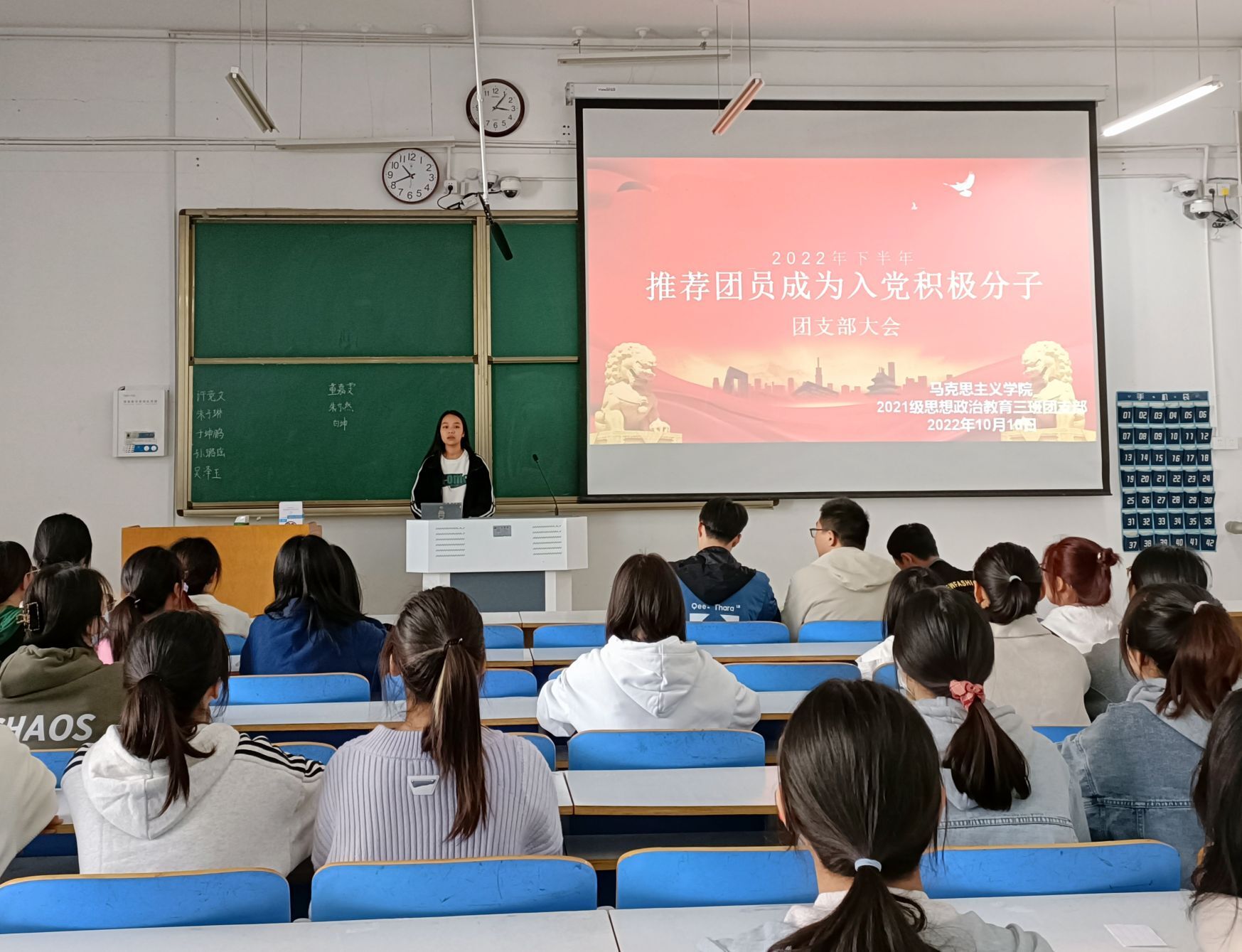 10月10日上午,ok138cn太阳集团5292021级思想政治教育三班在社科楼514教室召开2022年下半年入党积极分子评选会。2021级思想政治教育三班全体同学参加了此次会议。会议由团支书王岚霄主持。