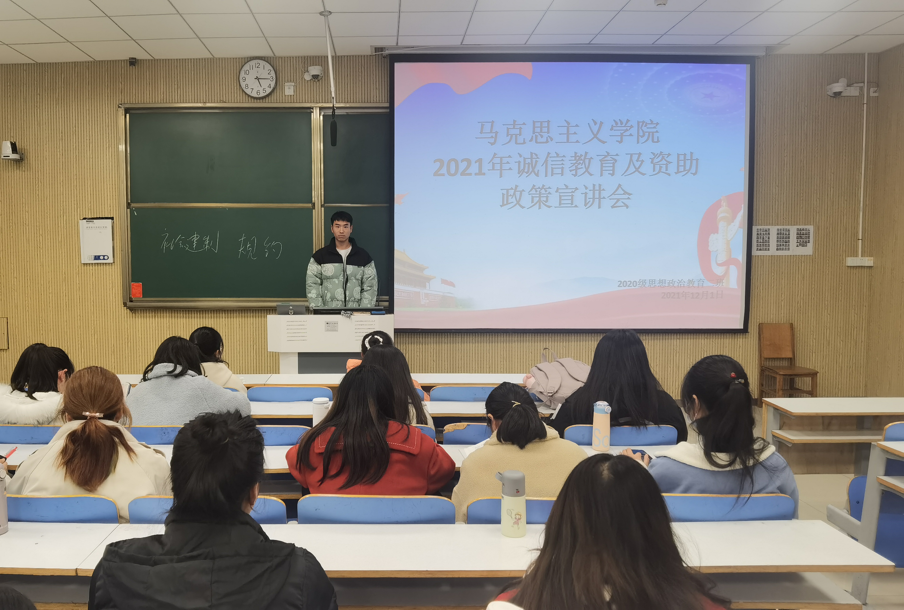 为进一步推进我院资助政策和资助育人宣传工作,切实增强资助工作实效。12月1日下午,ok138cn太阳集团5292020级思想政治教育二班、定向二班在社科楼515教室召开诚信教育及资助政策宣传主题班会。2020级思想政治教育二班、定向二班全体同学共同参与本次班会。班会由副班长高红凯主持。