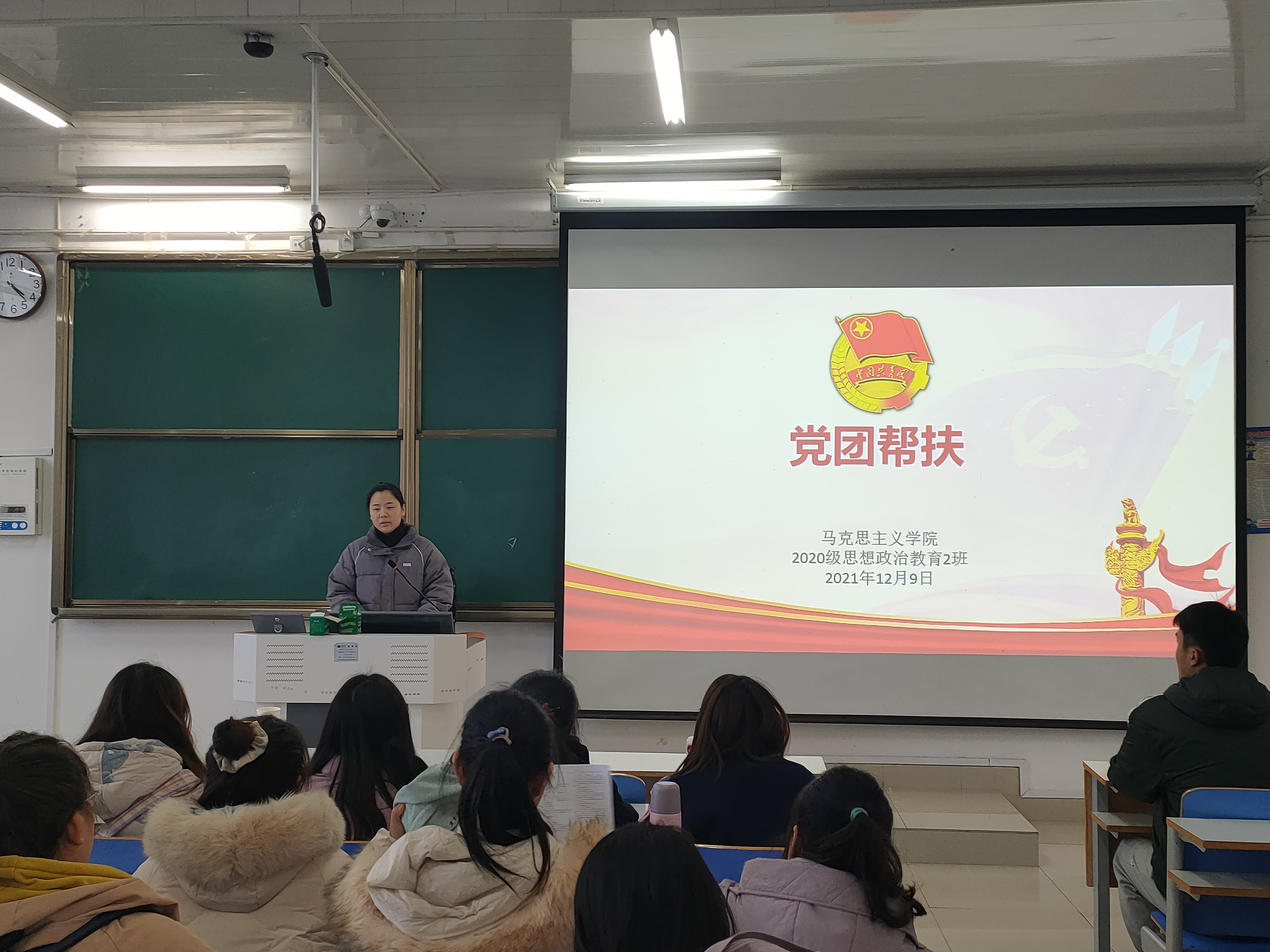 12月9日下午,ok138cn太阳集团5292020级思想政治教育二班在社科楼514教室开展党团帮扶活动,我院正式党员耿晗、预备党员贾雨晴以及2020级思想政治教育二班全体成员共同参与本次活动。活动由团支书陈宇航主持。