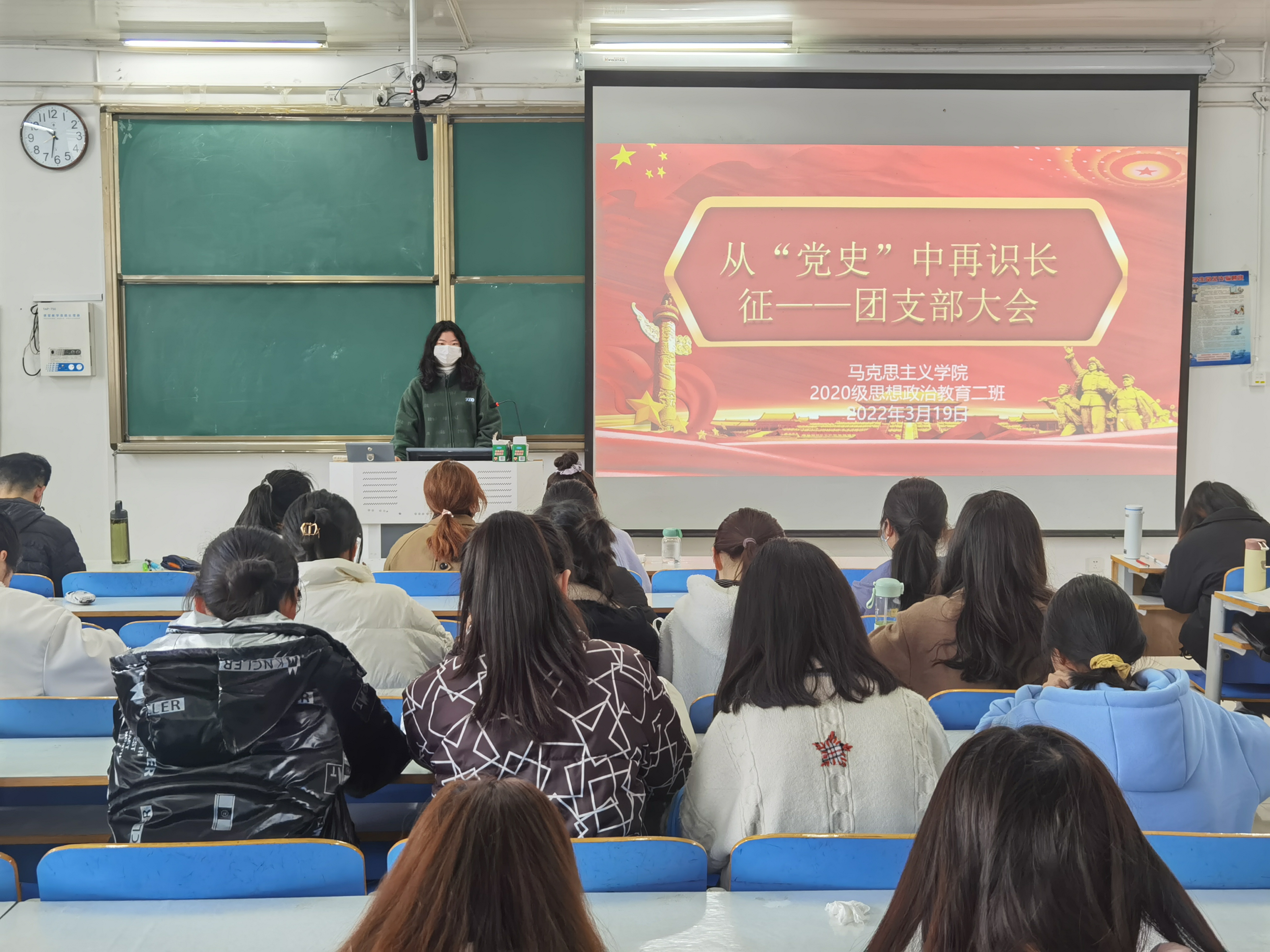 3月19日上午,ok138cn太阳集团5292020级思想政治教育二班、定向二班在社科楼514教室召开“从党史中再识长征”团支部大会。2020级思想政治教育二班、定向二班全体团员共同参会。会议由团支书李晨曦主持。
