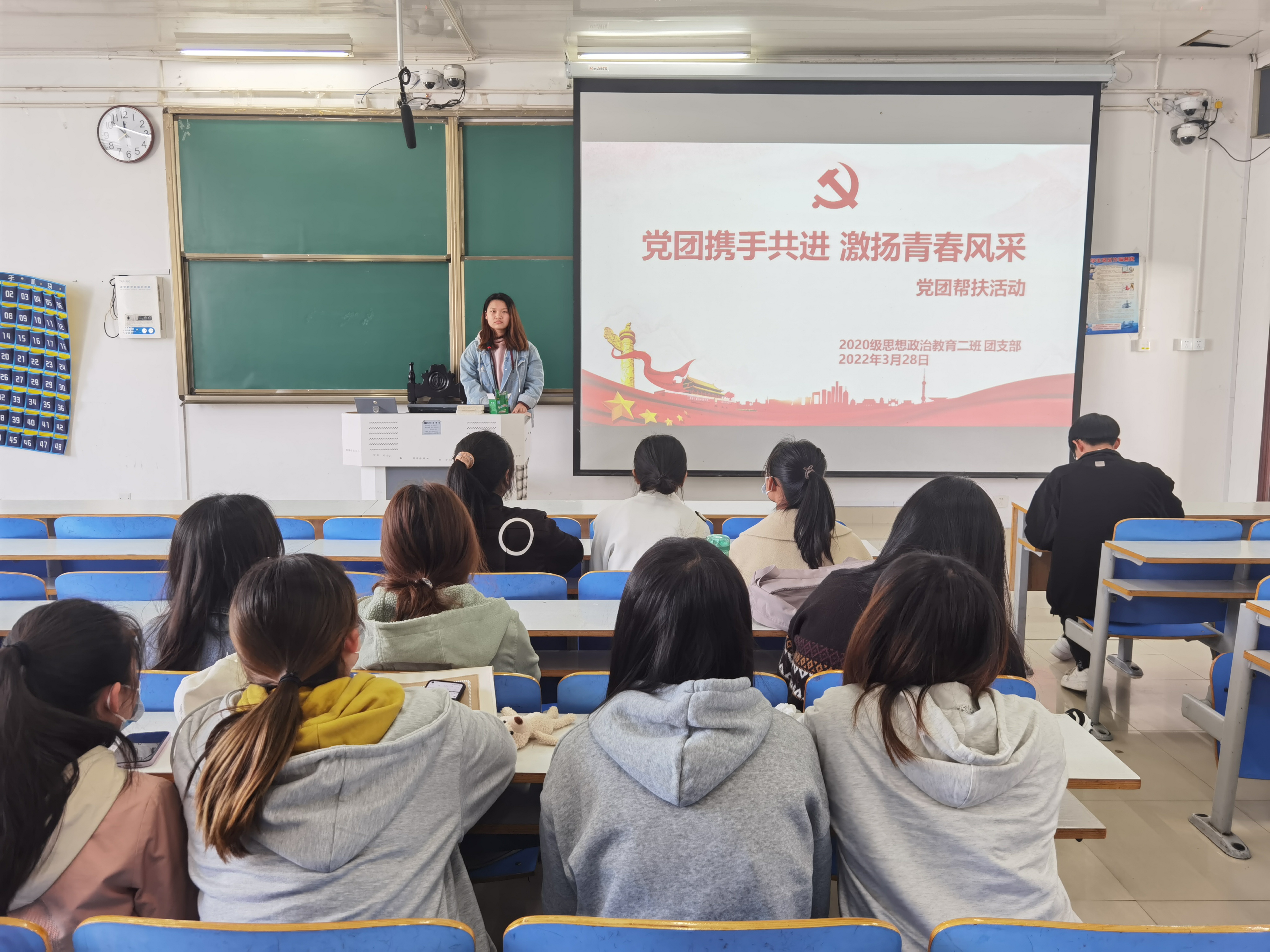 3月28日上午,ok138cn太阳集团5292020级思想政治教育二班在社科楼514教室召开“党团携手共进,激扬青春风采”党团帮扶主题班会。2019级预备党员代表王明亮、周永宁及2020级思想政治教育二班全体团员共同参与本次班会。班会由团支书陈宇航主持。