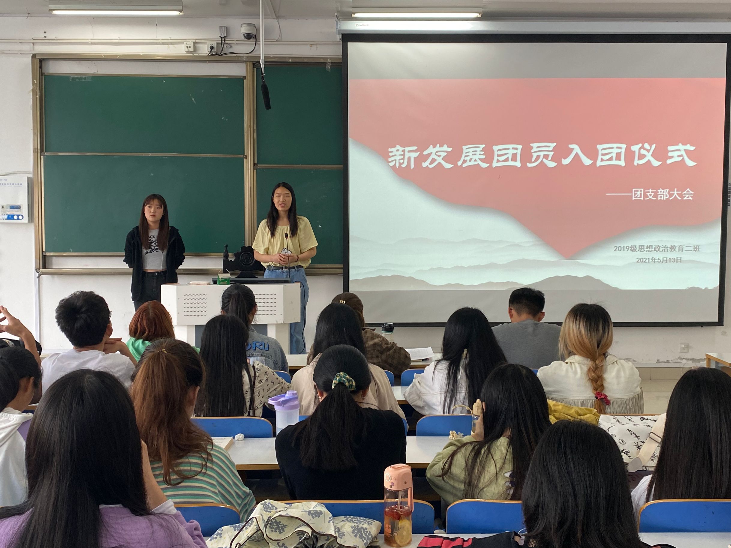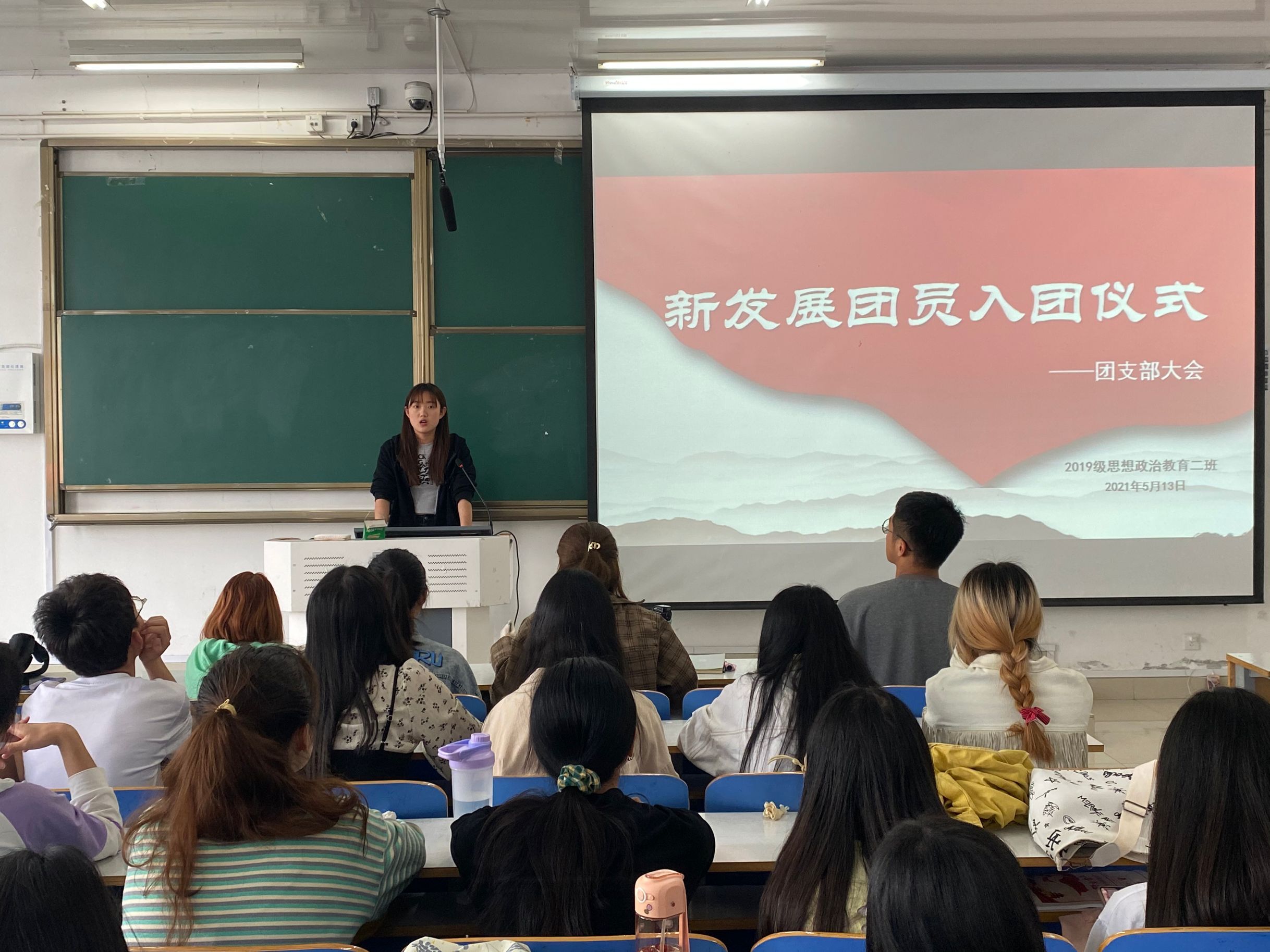 5月13日上午,ok138cn太阳集团5292019级思想政治教育二班在社科楼516教室召开“新发展团员入团仪式”团支部大会。2019级思想政治教育二班全体同学参加了本次大会,大会由团支书孙雅娴主持。