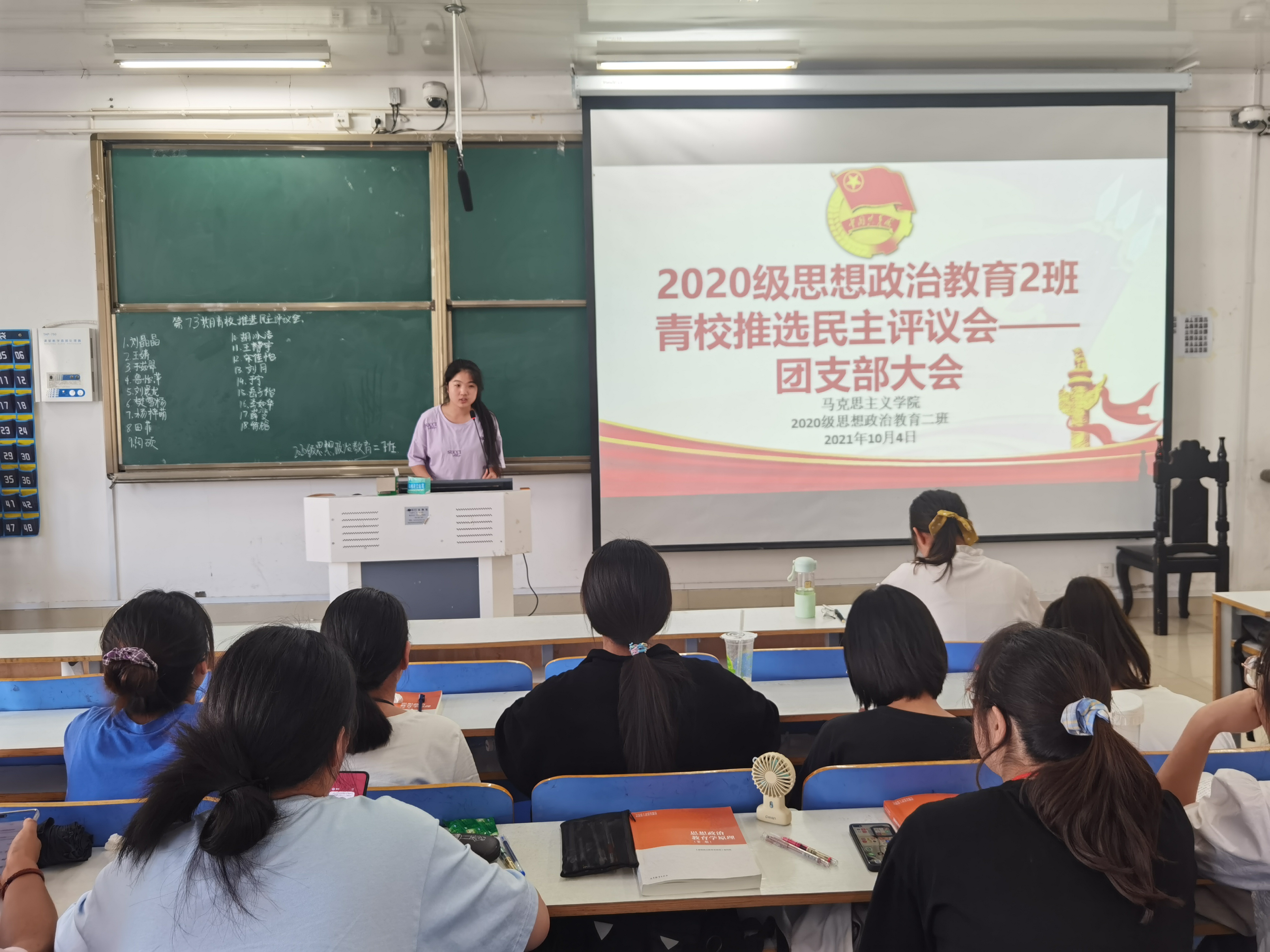 10月4日上午,ok138cn太阳集团529思想政治教育二班在社科楼516教室顺利召开第73期青校学员推选民主评选团支部大会。2020级思想政治教育二班全体团员共同参加本次会议。会议由孙雪主持。