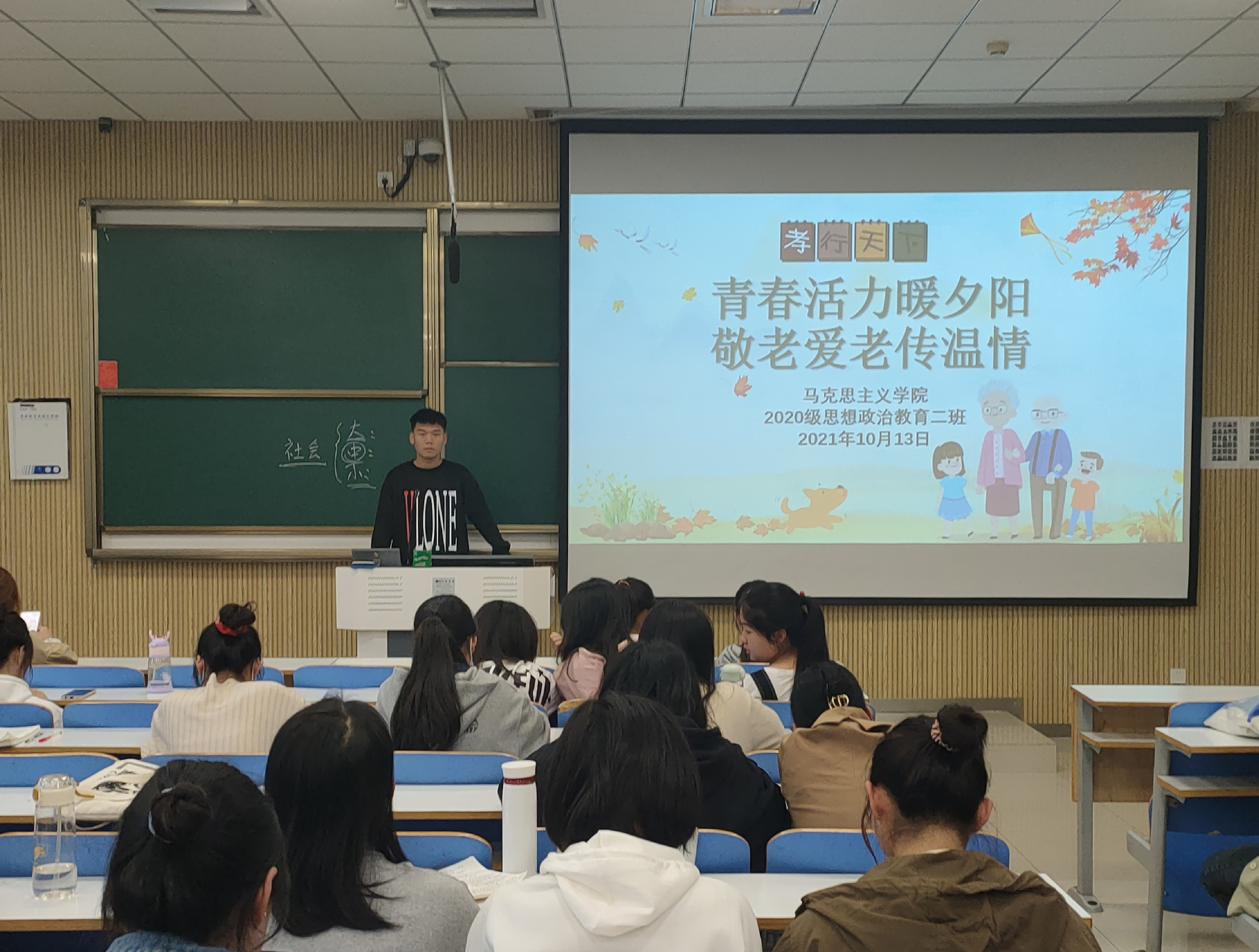 为弘扬孝老敬老的中华传统美德,10月13日下午,ok138cn太阳集团5292020级思想政治教育二班、定向二班“青春活力暖夕阳,敬老爱老传温情”主题团课在社科楼515教室顺利开展。二班、定向二班全体团员共同参与本次团课。团课由程歌讲授。