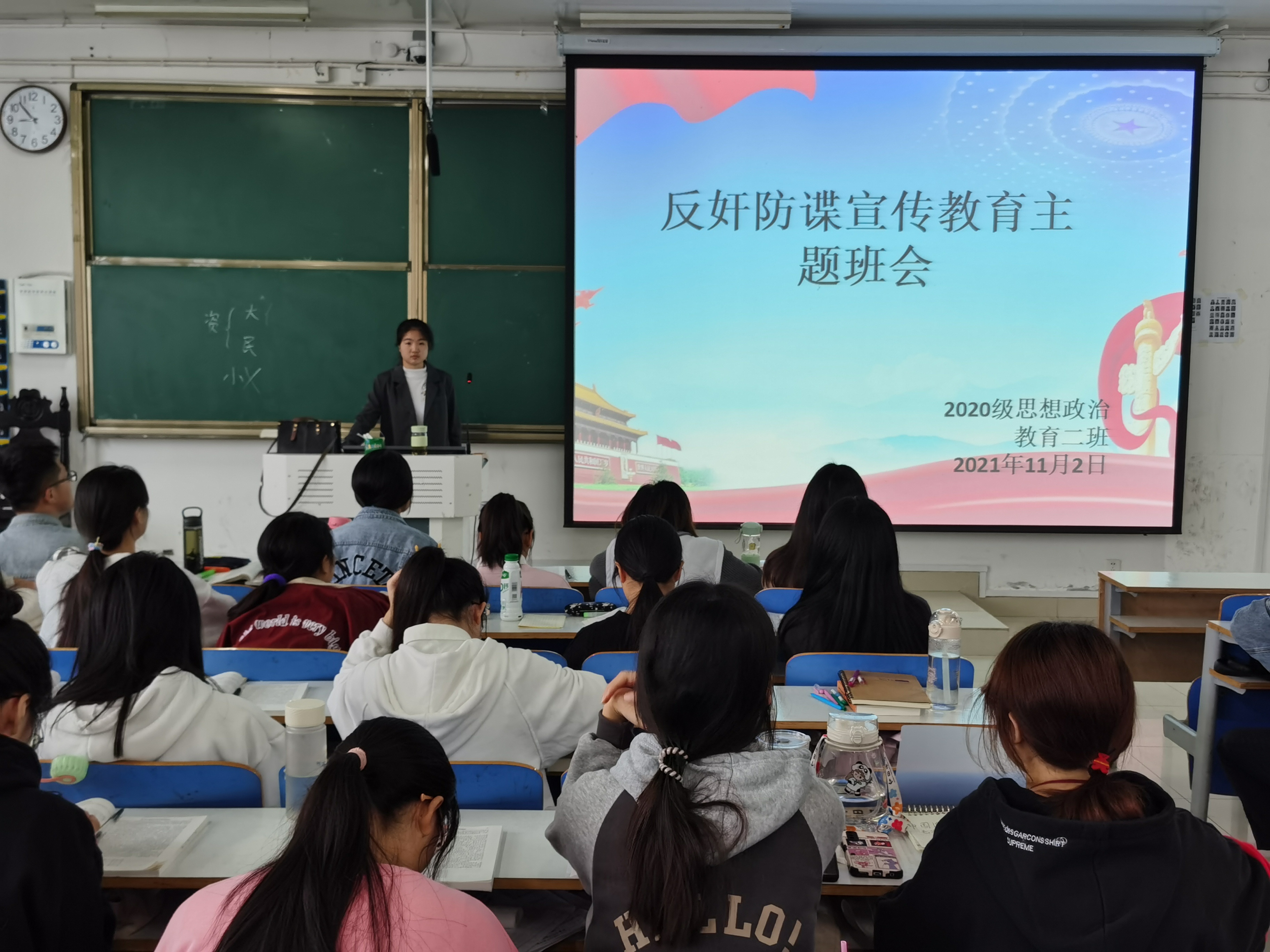 为进一步增强同学们的国家安全意识,11月2日上午,ok138cn太阳集团5292020级思想政治教育二班、定向二班在社科楼516教室召开“反奸防谍”宣传教育主题班会。2020级思想政治教育二班、定向二班全体同学共同参与本次班会。班会由副班长孙雪主持。