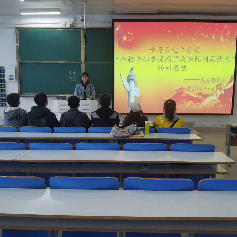 10月16日上午,ok138cn太阳集团5292019级思想政治教育第二团支部在社科楼516教室召开“学习习近平有关‘年轻干部要提高解决实际问题能力’的新思想”主题会议。2019级思想政治教育二班全体班委共同参会。会议由团支书孙雅娴主持。
