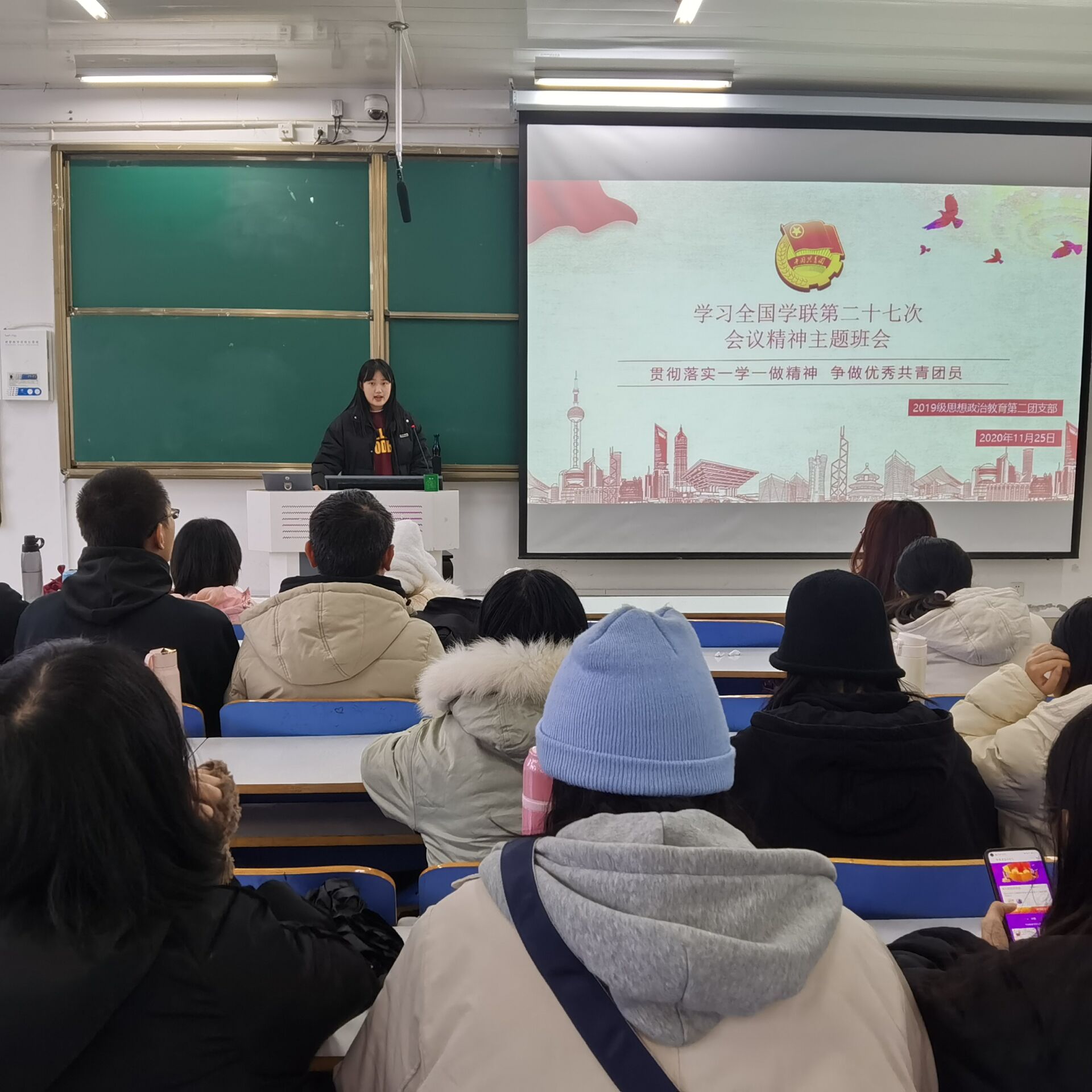 11月25日上午,ok138cn太阳集团5292019级思想政治教育二班于社科楼516教室顺利召开了学习中华全国学生联合会第二十七次代表大会精神传达培训会。我班全体同学共同参会,会议由团支书孙雅娴主持。