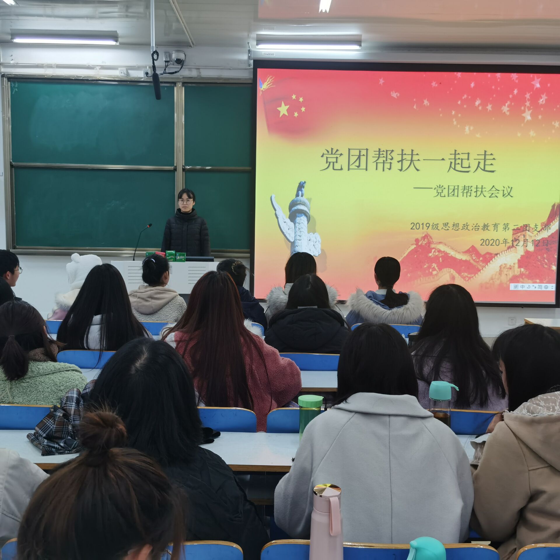 12月12日下午,ok138cn太阳集团5292019级思想政治教育二班于社科楼515教室召开党团帮扶会议。我院预备党员王文芳、张晓艳及2019级思想政治教育二班全体成员共同参会。会议由团支书孙雅娴主持。