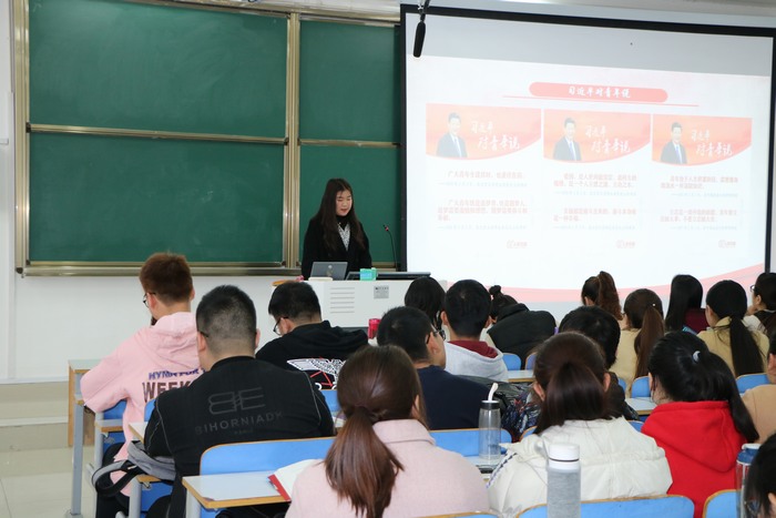 首先,王泽鑫组织大家共同观看习近平总书记知青岁月的相关短片,引出活动主题。接着,学生代表上台向大家分享出彩河南人李芳,孔凡胜,谭浩,王培等优秀党员代表的事迹,激励大家有所思考。随后,王泽鑫引导大家就此次活动进行自由讨论。学生代表杨珂馨谈到,受到党员家庭环境的熏陶,更加坚定的认识到跟党走中国特色社会主义道路的信念,成长为中国特色社会主义事业的合格建设者和可靠接班人。最后,王泽鑫进行总结发言,做为青年团员要不断提高自身的思想政治素质、政策理论水平、创新能力、实践能力和组织协调能力,努力成为可以担当民族复兴大任的时代新人。