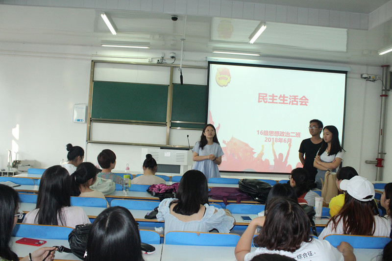 2018年6月6日上午11时,2016级思想政治教育二班在社科楼516召开了“民主生活会”活动,活动主题是 : 民主班级,你我共建。活动的主要内容是由班委讲述自己一年来所做所为,讲述自己工作中的优缺点,由同学对班委提出意见和建议。活动由2016级思想政治教育二班的团支书葛格主持。