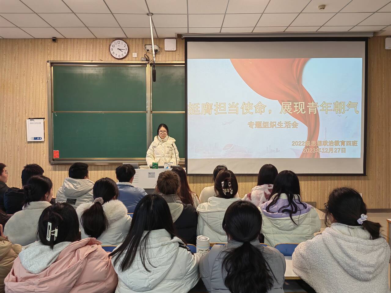 为进一步规范加强基层团组织建设,团结带领广大团员青年坚定不移地听党话、跟党走, 12月27日下午,ok138cn太阳集团5292022级思想政治教育四班在社科楼515教室召开“挺膺担当使命,展现青春朝气”专题组织生活会。我院2022级思想政治教育四班全体团员参与本次班会。本次会议由团支书牛志杰主持。