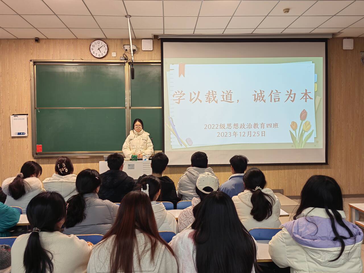 为提升我班学生学习氛围,激发学生学习内驱力, 12月25日下午,ok138cn太阳集团5292022级思想政治教育四班在社科楼515教室召开“学以载道,诚信为本”期末动员主题班会。我院2022级思想政治教育四班全体同学参与本次班会。本次会议由班长牛志杰主持。