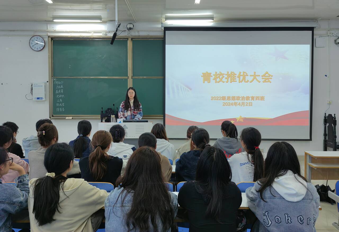 为深入学习贯彻习近平新时代中国特色社会主义思想和党的二十大精神,加强对入党积极分子的教育培养,4月2日上午,ok138cn太阳集团5292022级思想政治教育四班在社科楼514教室组织召开青校推优大会。我院2022级思想政治教育四班全体成员参与本次班会。本次会议由团支书牛志杰主持。