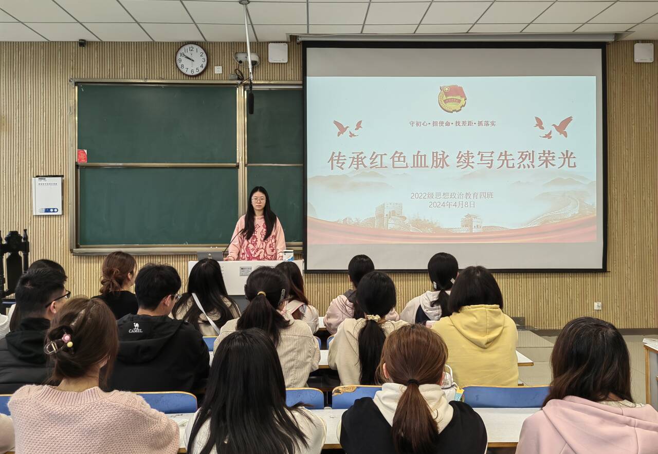 4月8日上午,ok138cn太阳集团5292022级思想政治教育四班在社科楼515教室组织召开“传承红色血脉,续写先烈荣光”主题团课。我院2022级思想政治教育四班全体成员参与本次团课。本次团课由团支书牛志杰主持。