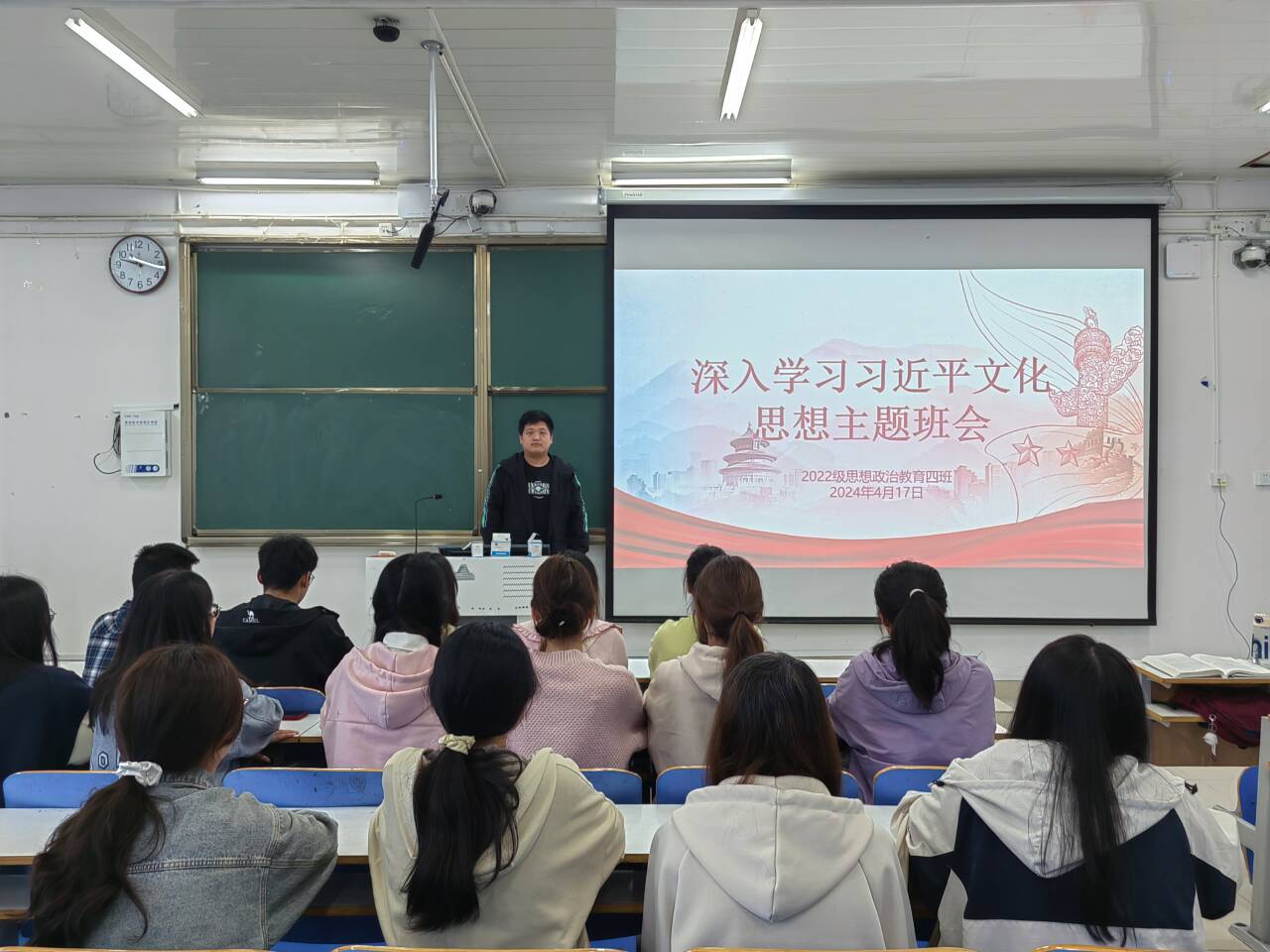为深入学习贯彻习近平文化思想,引导广大青年学子勇担强国使命,矢志文化报国,4月17日上午,ok138cn太阳集团5292022级思想政治教育四班在社科楼514教室组织召开“深入学习习近平文化思想”主题班会。我院2022级思想政治教育四班全体成员参与本次班会。本次班会由副班长宋奕铭主持。