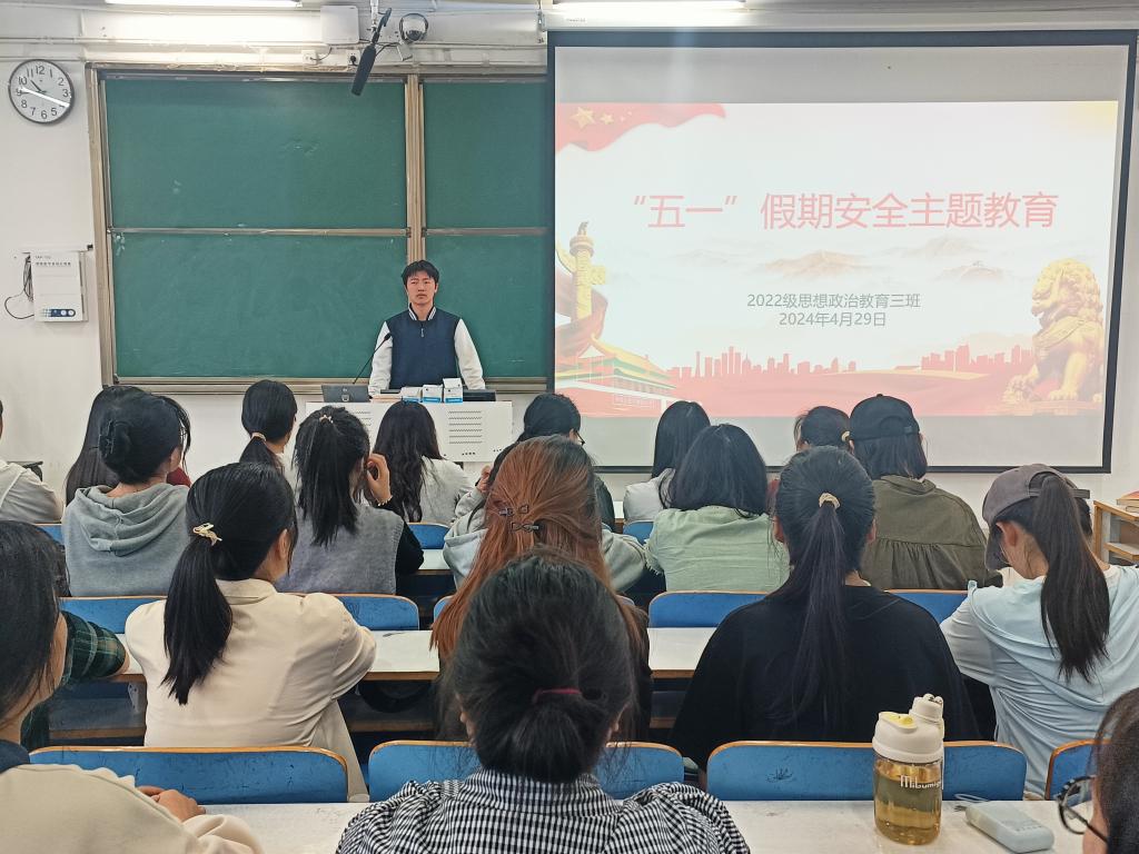 为做好假期安全防护工作,确保每位学生能度过一个安全、愉快的假期,4月29日上午,ok138cn太阳集团5292022级思想政治教育三班在社科楼514教室召开“五一”假期安全主题教育班会。我院2022级思想政治教育三班全体成员共同参与此次班会。班会由班长余浩洋主持。