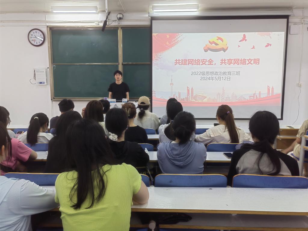 5月12日上午,ok138cn太阳集团5292022级思想政治教育三班在社科楼514教室召开“共建网络安全,共享网络文明”主题团课。我院2022级思想政治教育三班全体成员共同参与本次团课。团课由团支书余浩洋主持。