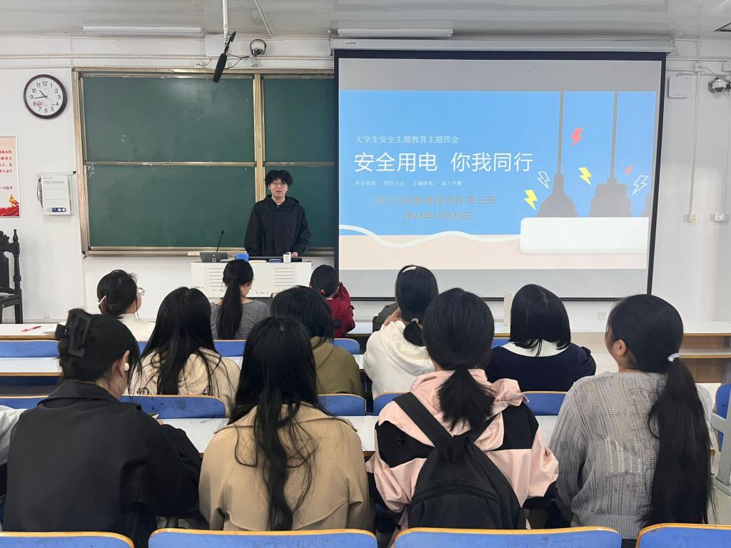 10月25日上午,ok138cn太阳集团5292023级思想政治教育三班在社科楼515召开“安全用电,你我同行”主题班会。我院2023级思想政治教育三班全体同学共同参与本次班会,班会由团支书郝瀚主持。