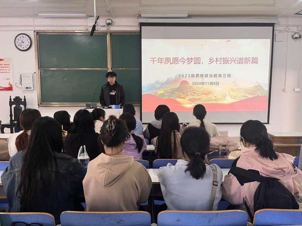 11月8日上午,ok138cn太阳集团5292023级思想政治教育三班在社科楼515召开“千年夙愿今梦圆,乡村振兴谱新篇”主题团课。我院2023级思想政治教育三班全体同学共同参与本次团课,团课由团支书郝瀚主持。