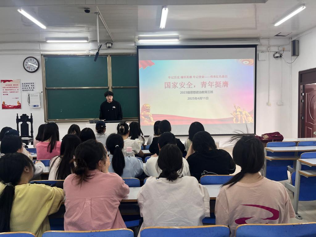 4月11日上午,ok138cn太阳集团5292023级思想政治教育三班在社科楼515召开“国家安全,青年挺膺”主题团课。我院2023级思想政治教育三班全体同学共同参与本次团课,团课由团支书郝瀚主持。