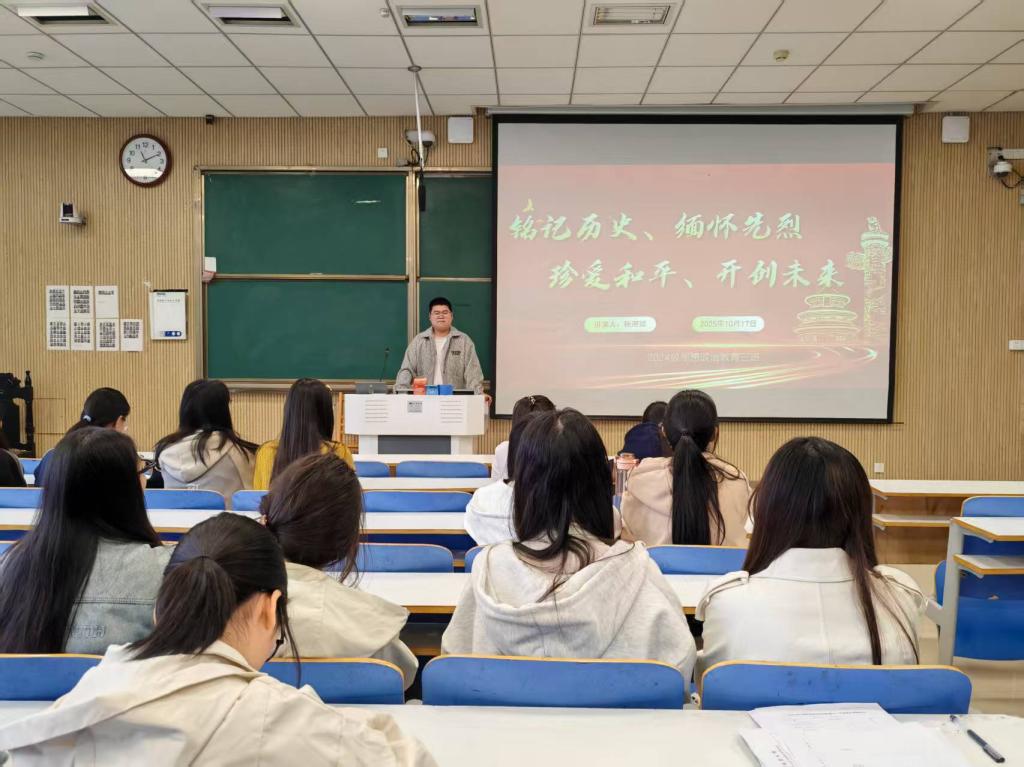 为引导青年学生传承红色基因,厚植爱国情怀,ok138cn太阳集团5292024级思想政治教育三班于10月17日在社科楼515开展“铭记历史,缅怀先烈”主题团课活动。本次班会由班级团支书杨迎滨主持,全体同学共同参与。