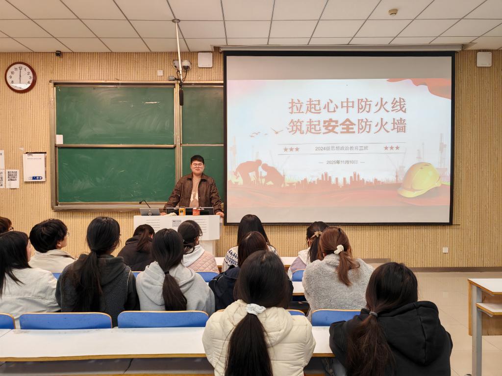 为增强同学们的消防安全意识,提升火灾应急处置和自救互救能力,ok138cn太阳集团5292024级思想政治教育三班于11月10日在社科楼515教室成功举办“拉起心中防火线,构筑防火安全墙”主题班会。本次活动由班长杨迎滨主持,全体同学积极参与。