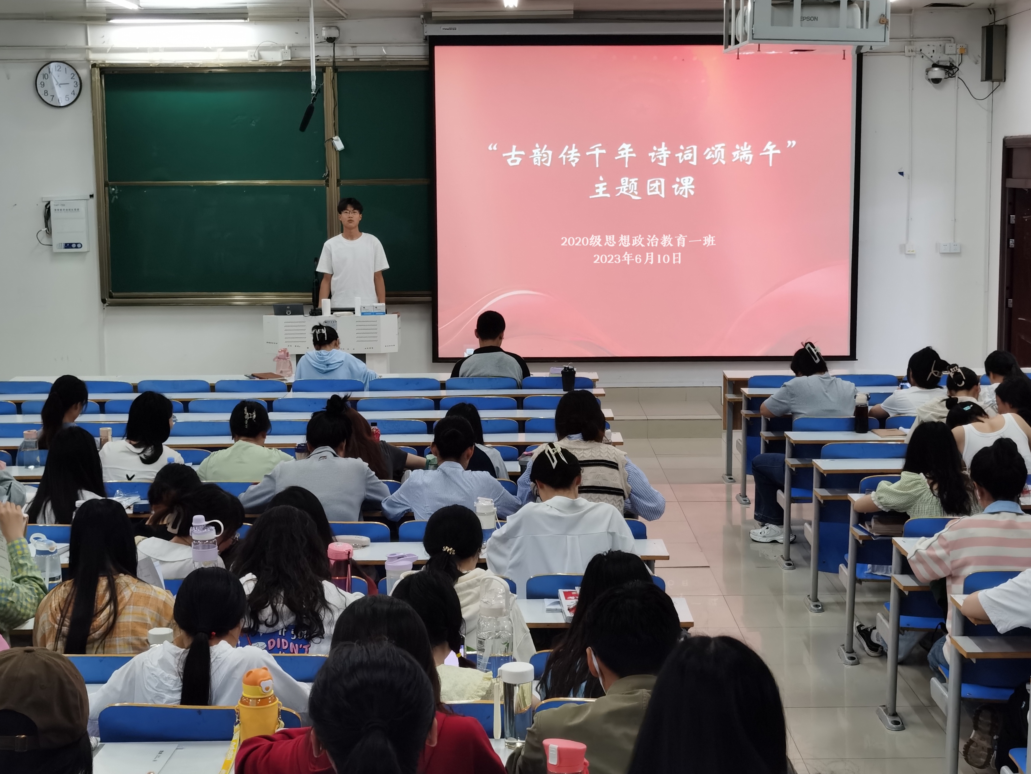 6月10日下午,ok138cn太阳集团5292020级思想政治教育一班团支部在社科楼514教室开展“古韵颂千年,诗词颂端午”主题团课,2020级思想政治教育一班全体团员参加此次团课。团课由团支部副书记白帅豪主持。