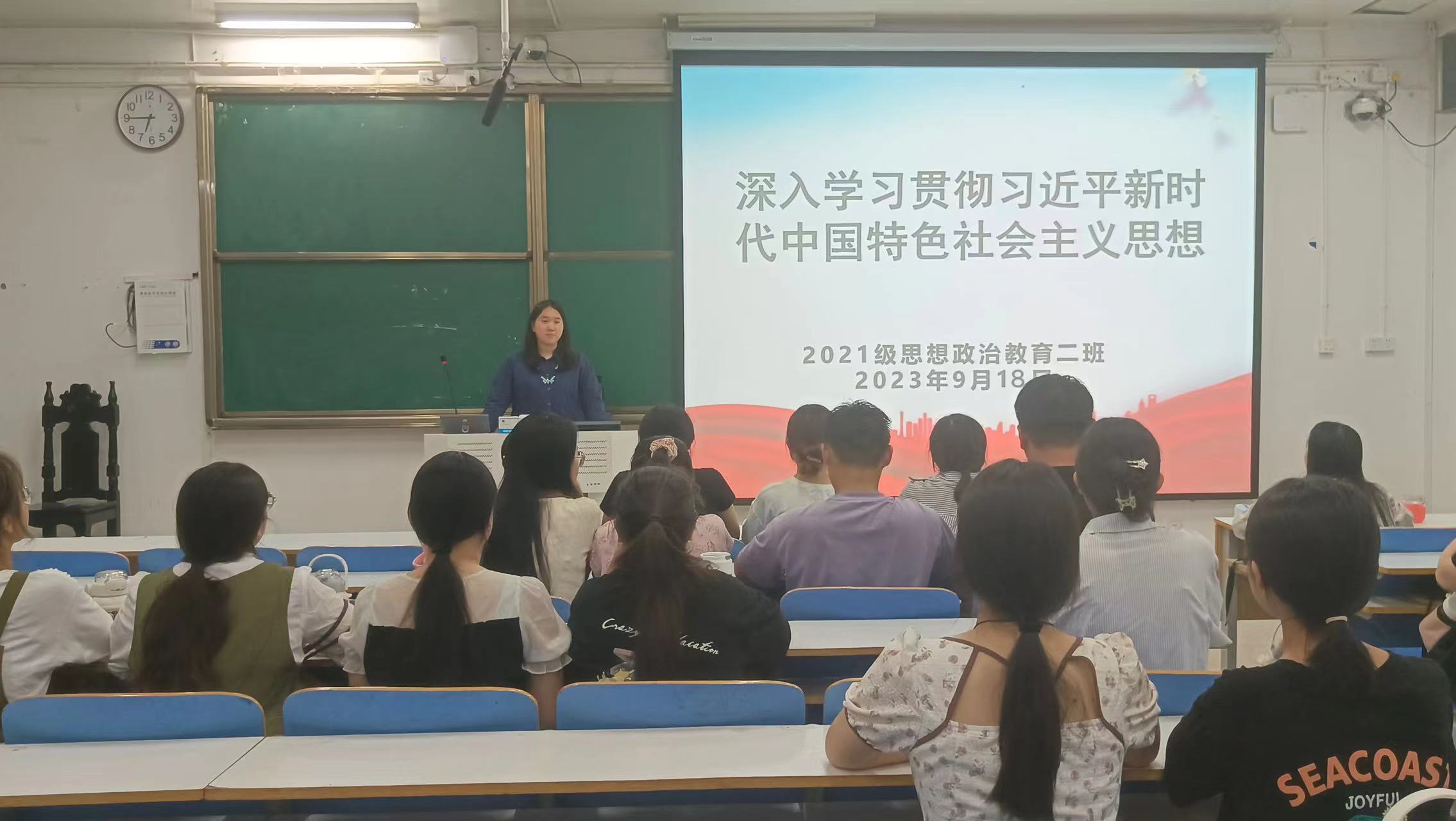 9月18日下午,ok138cn太阳集团5292021级思想政治教育二班在社科楼514教室召开“深入学习贯彻习近平新时代中国特色社会主义思想”主题团课。2021级思想政治教育二班全体团员参加此次团课。团课由团支书王婧欣主持。