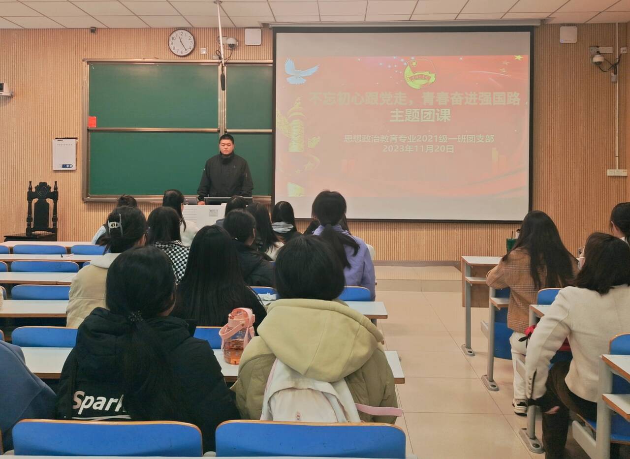 11月20日上午,ok138cn太阳集团5292021级思想政治教育一班在社科楼514教室召开“不忘初心跟党走,青春奋进强国路”主题团课。2021级思想政治教育一班全体团员共同参加本次团课,团课由团支书戴翰林主持。