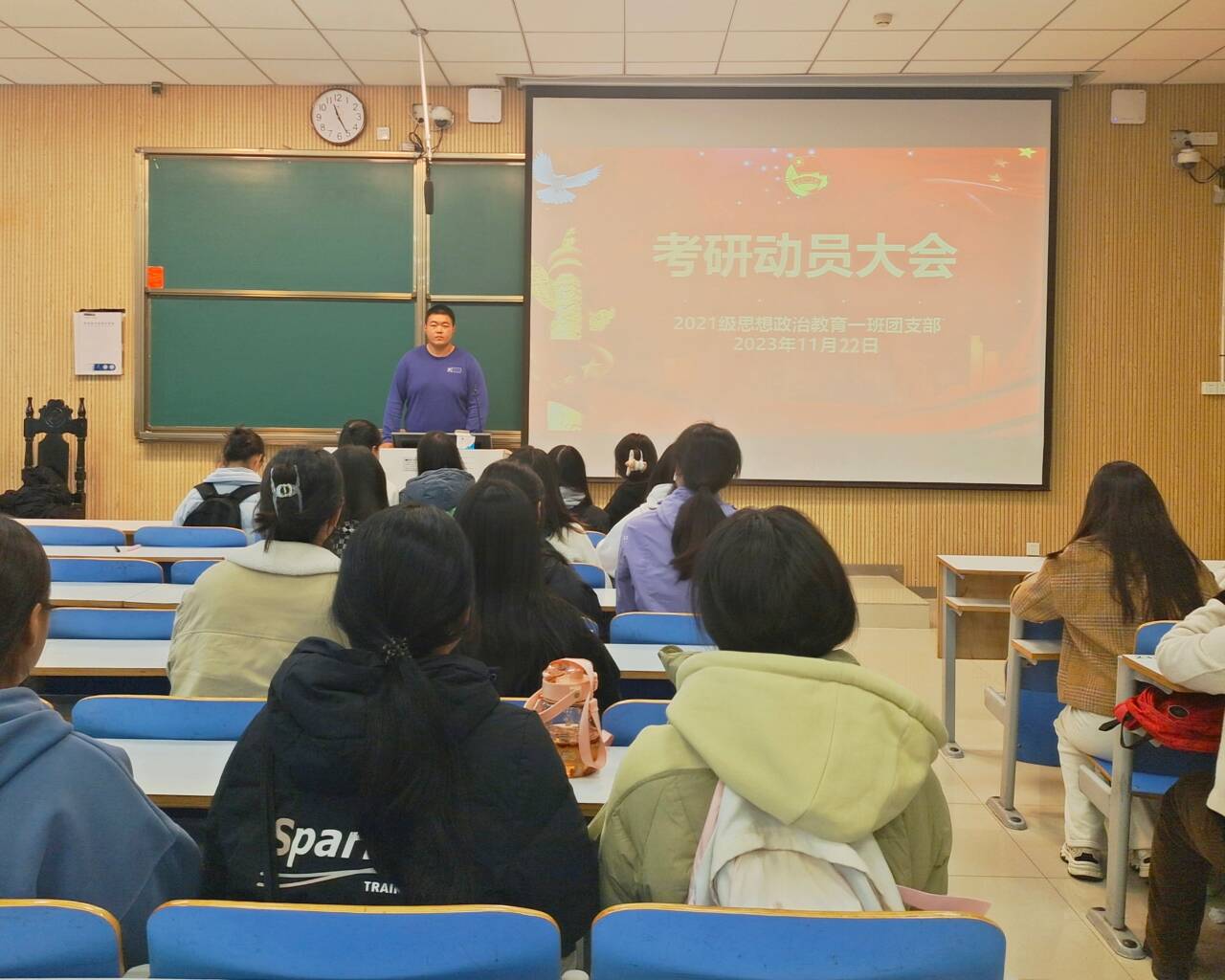 为了引导学生树立正确的考研目标,增强考研自信,提前做好考研准备,11月22日上午,ok138cn太阳集团5292021级思想政治教育一班在社科楼514教室召开“考研动员大会”。2021级思想政治教育一班全体成员参加了此次会议。会议由团支书戴翰林主持。