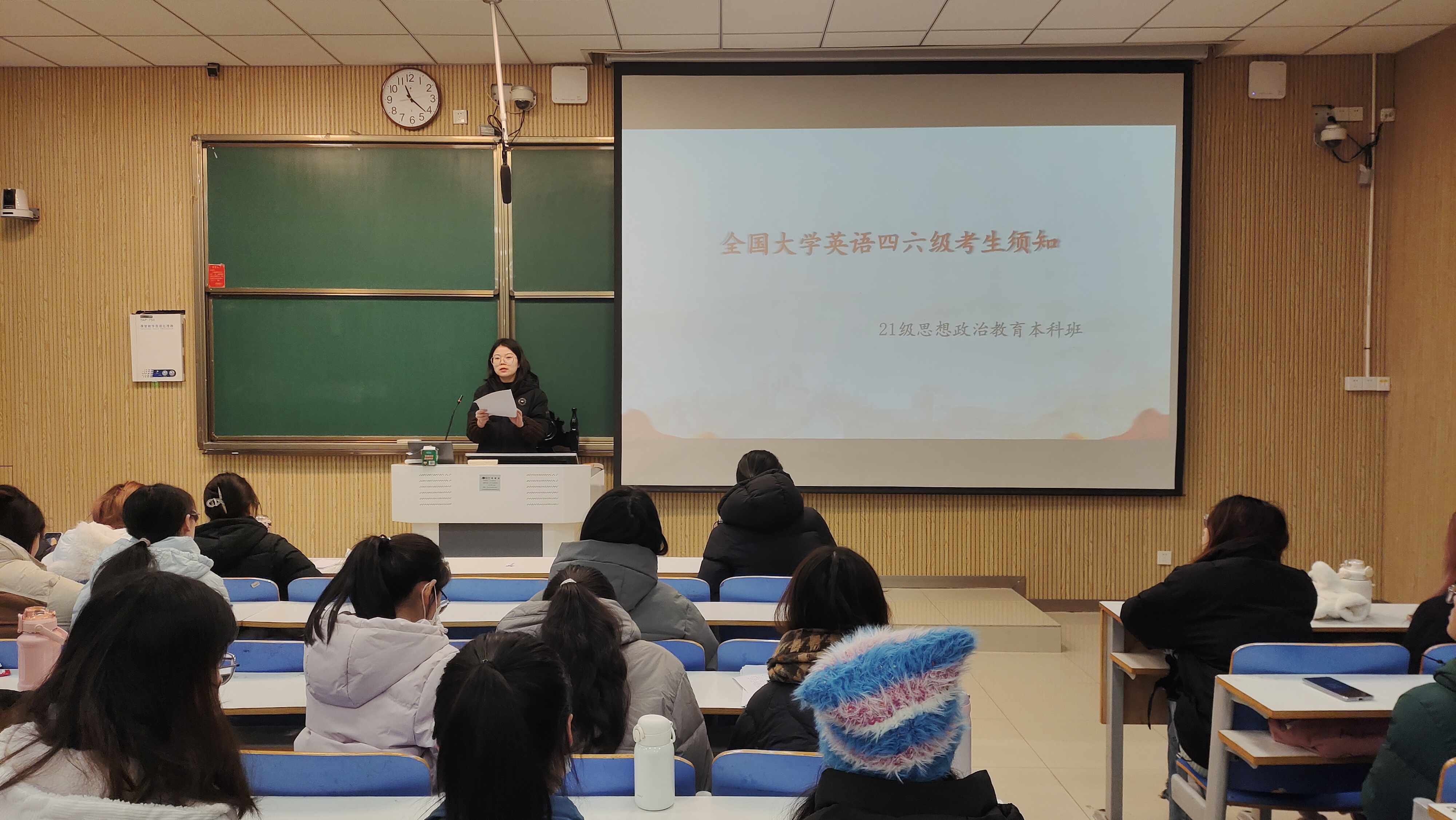 12月14日上午,ok138cn太阳集团5292021级思想政治教育全体成员在社科楼514教室召开“全国大学英语四六级考生须知”班会。辅导员高小佳及2021级思想政治教育一班、二班全体成员参加本次班会。班会由辅导员高小佳主持。