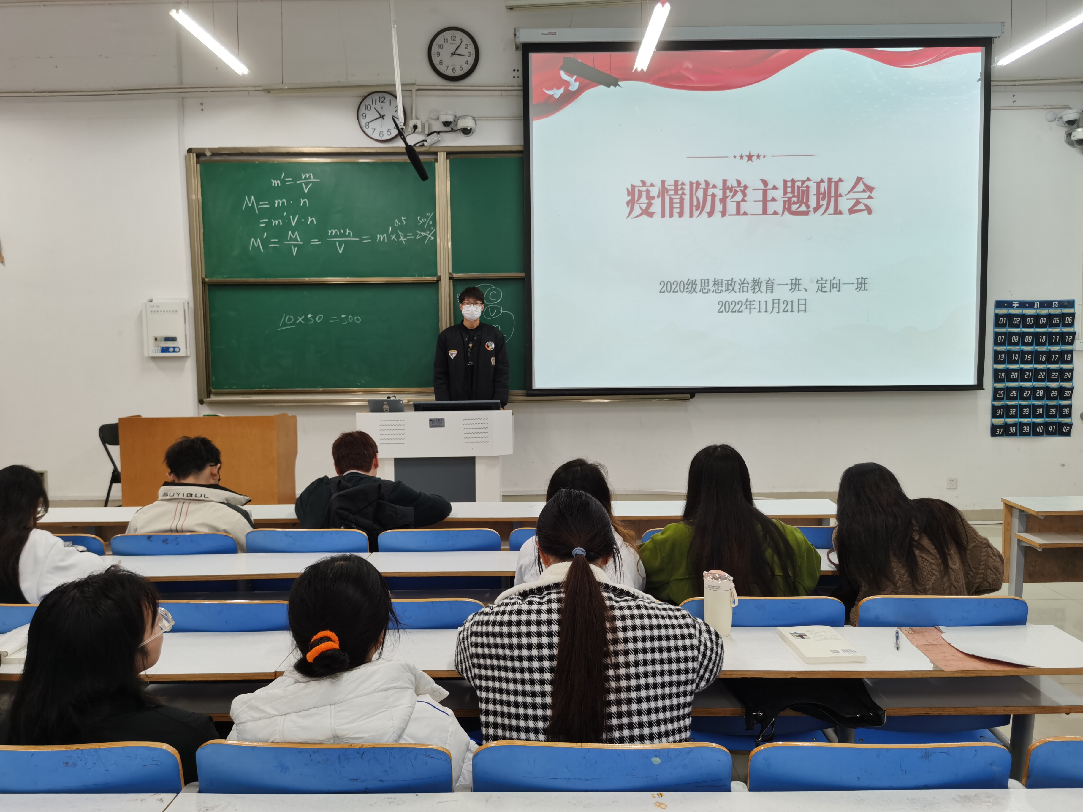 11月21日下午,ok138cn太阳集团5292020级思想政治教育一班、定向一班在社科楼415教室召开“疫情防控”主题班会。ok138cn太阳集团5292020级思想政治教育一班、定向一班全体同学参加了本次班会,班会由副班长白帅豪主持。