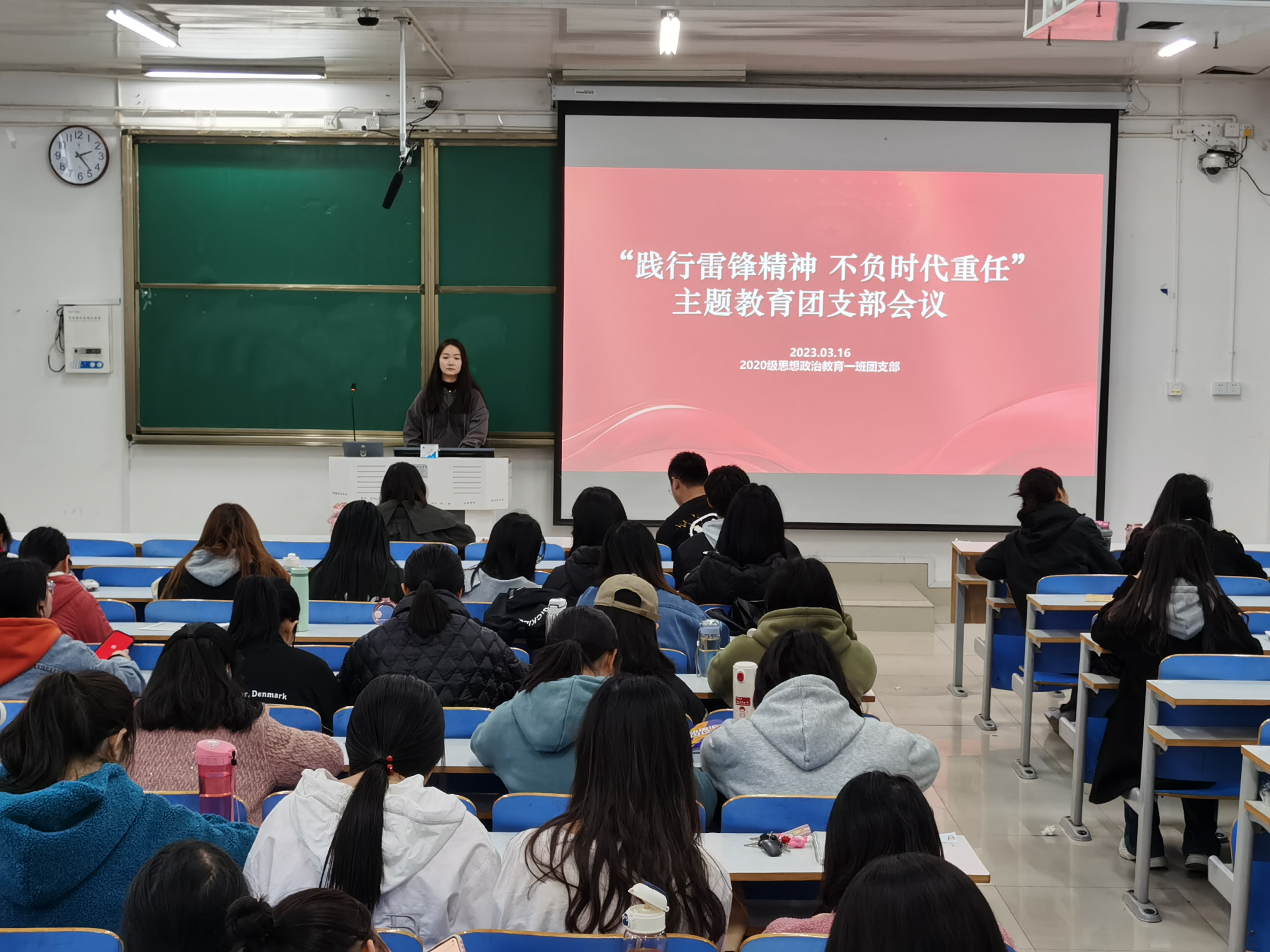 为贯彻落实习近平总书记关于学习雷锋精神和开展志愿服务工作的重要指示精神,加强团支部同学的思想品德教育,3月16日下午,ok138cn太阳集团5292020思想政治教育一班在社科楼514教室开展“践行雷锋精神,不负时代重任“主题团课。2020级思想政治教育一班全体团员参加此次团课。团课由团支部书记卢茜雨主持。