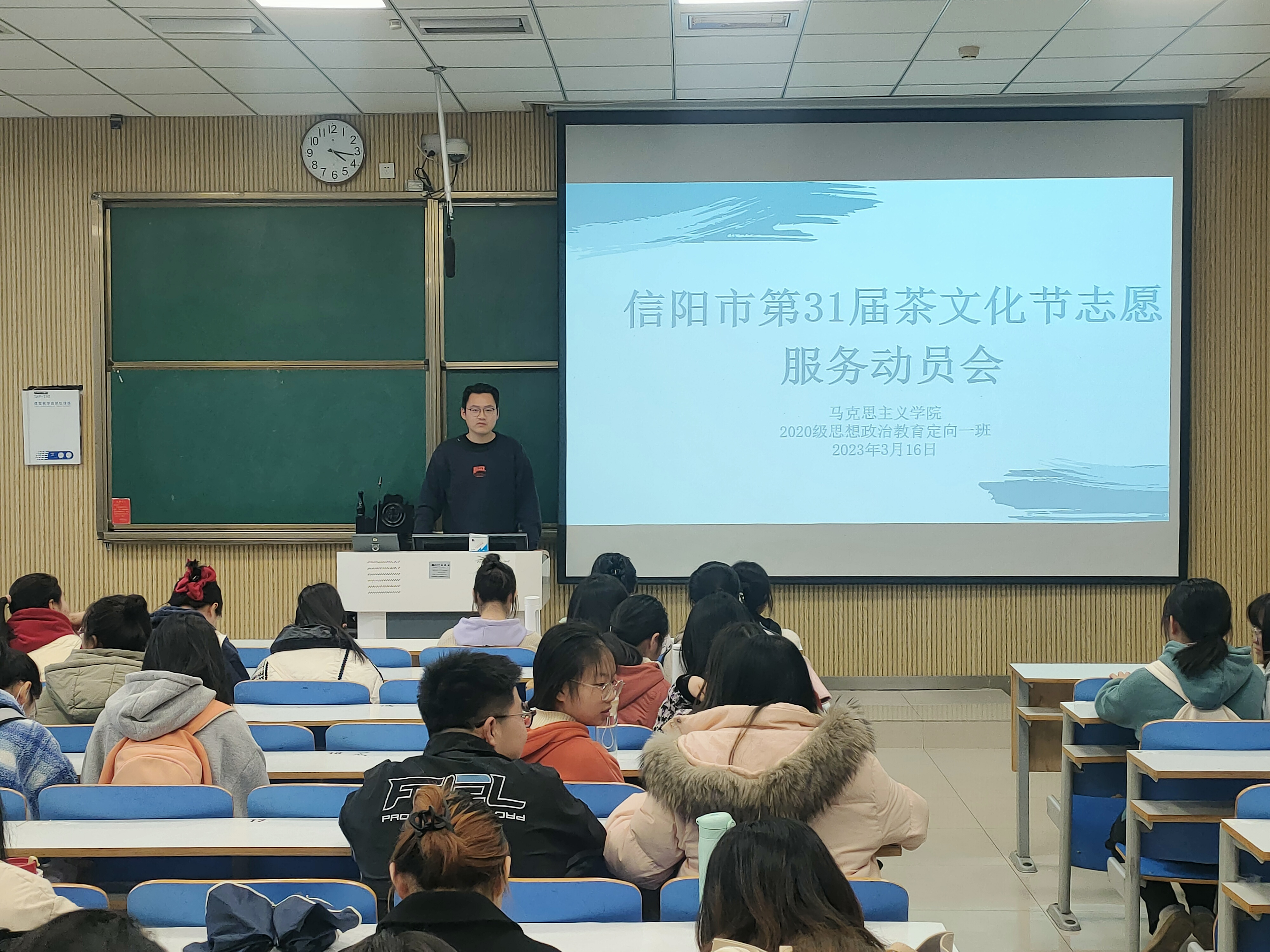 3月16日上午,ok138cn太阳集团5292020级思想政治教育定向一班在社科楼515教室顺利举行了信阳市第31届茶文化节志愿服务动员会。此次班会由团支书朱紫峰主持。