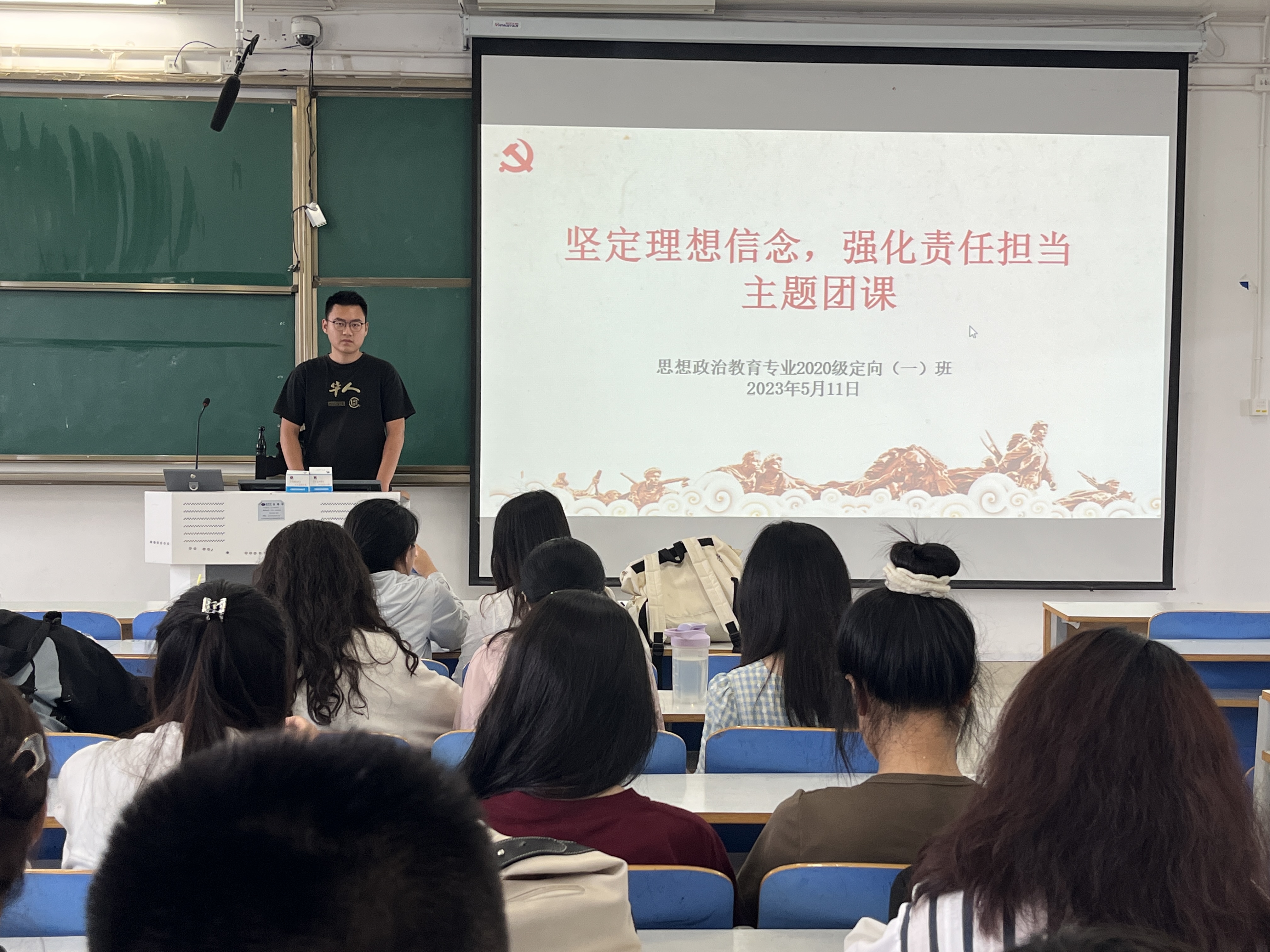 5月11日下午,ok138cn太阳集团5292020级思想政治教育定向一班在社科楼514教室顺利举行了坚定理想信念,强化责任担当主题班会。此次班会由团支书朱紫峰主持。